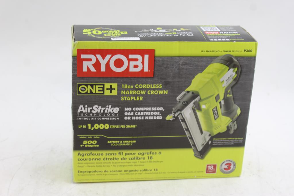 Get a great deal with this online auction for a Ryobi One+ P360 Cordless Narrow Crown Stapler presented by Property Room on behalf of a law enforcement or public agency client. - Brand: Ryobi One+