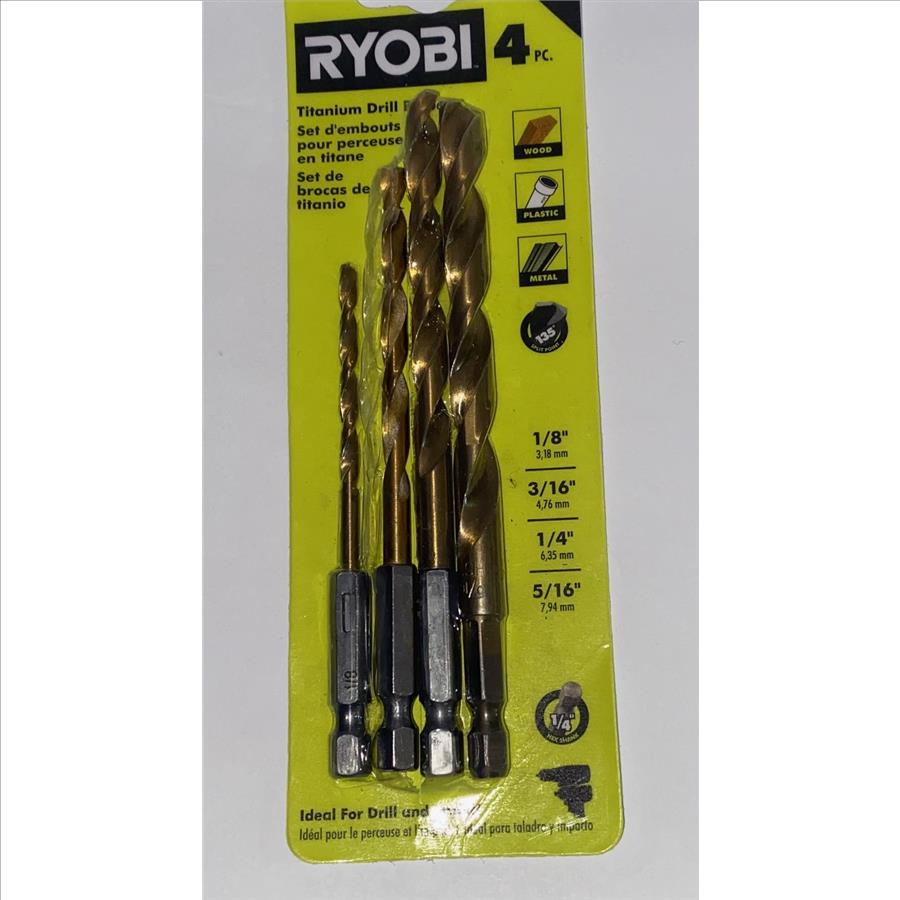 Ryobi Titanium 4-Piece Hex Shank Pilot Drill Bit Set