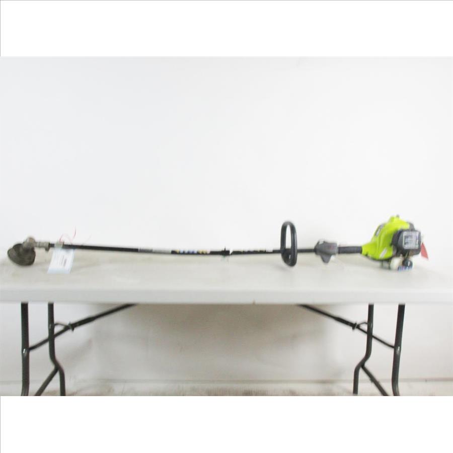 Get a great deal with this online auction for a gardening tool presented by Property Room on behalf of law enforcement or public agency client. Brand: Ryobi Model: RY253SS Color : Green Gas powered, pull cord start, kill switch, Straight bar, 25cc engine, adjustable grip handle, adjustable bar length, missing line guard. - Measurements: 66"