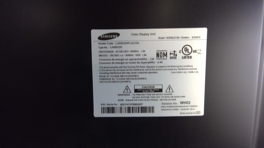 Get a great deal with this online auction presented by PropertyRoom.com on behalf of a law enforcement or public agency client. Model: E55D Screen Size: 55'' Date of Manufacture: August 2014 Measurements: 49''Lx31''H Base: None Remote Control: None Power Cord: None Physical Condition: Good Testing Results: Untested