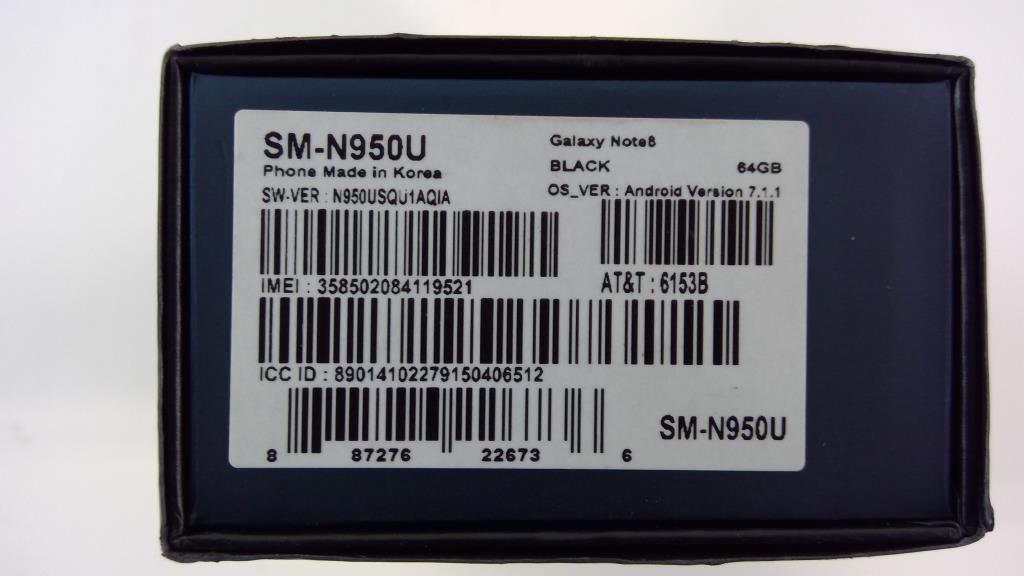Get a great deal with this online auction presented by PropertyRoom.com on behalf of a law enforcement or public agency client. Model: SM-N950U IMEI/MEID/ESN/HEX: 358502084119521 Unable to test SIM card functionality Activation Lock: Unknown Carrier Lock: Unknown Google Lock: Unknown Physical Condition: New in Sealed box Testing Results: Item has not been tested