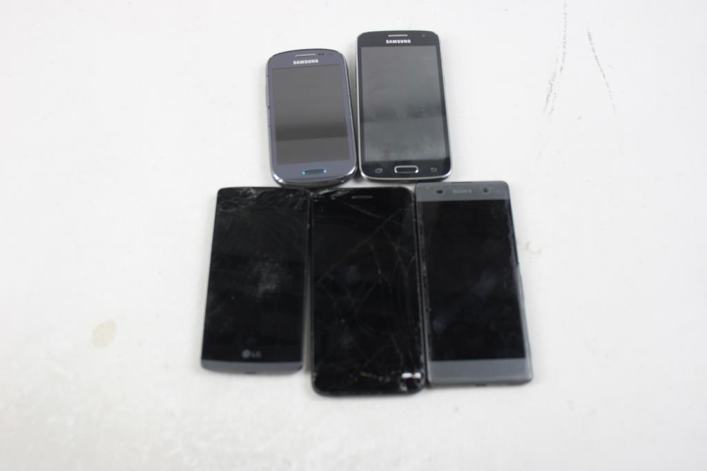 Samsung, Sony Cell Phone Lot, 5 Pieces, Sold For Parts
