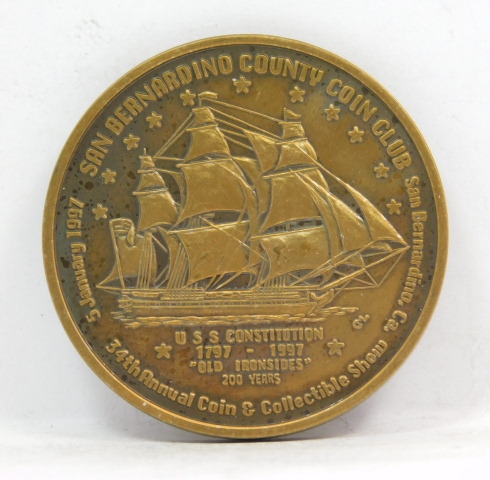 San Bernardino County Coin Club Commemorative Medal/Coin - 1997 - 200 Years of the U.S.S Constitution - "Old Ironsides" - Bronze