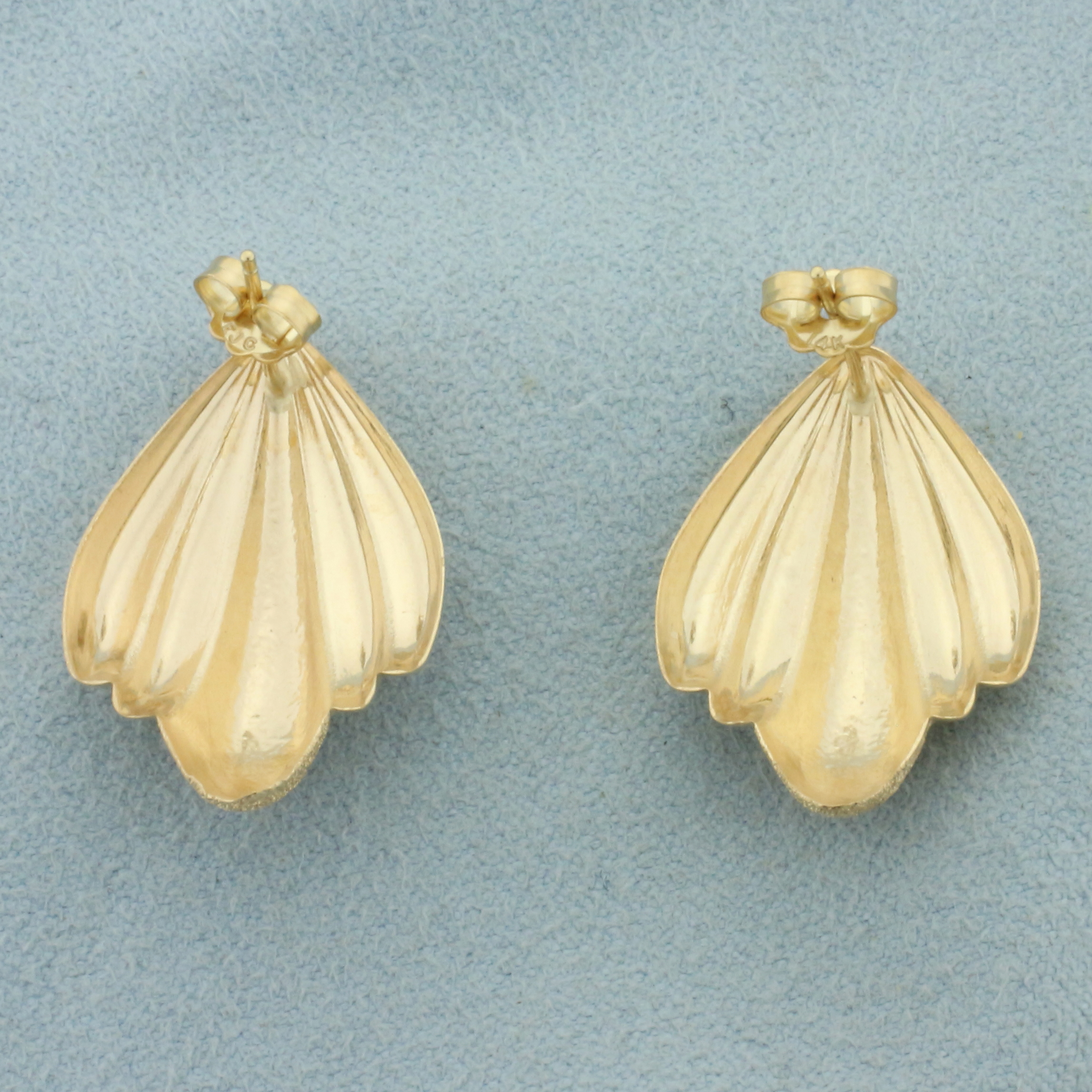 Sandblast Finish Fan Design Earrings in 14k Yellow Gold