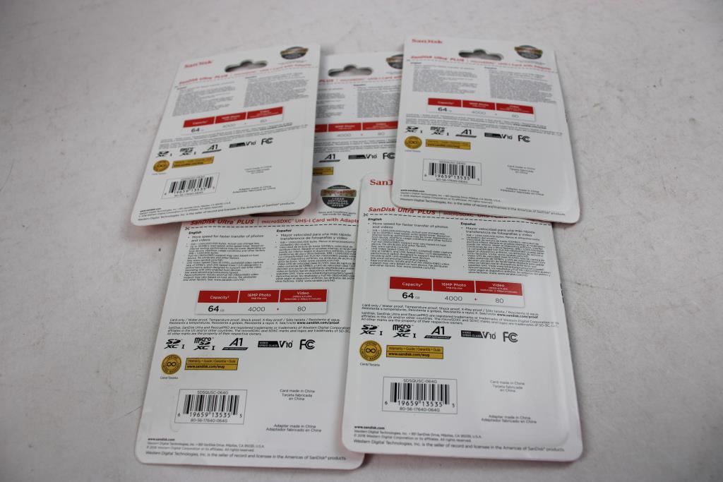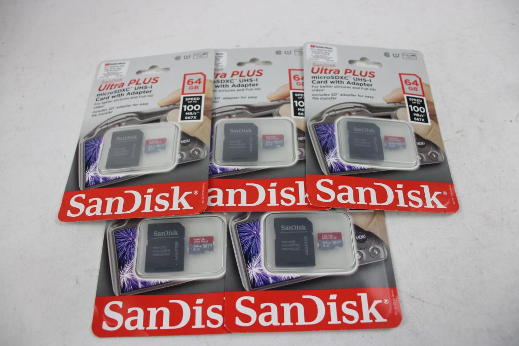 Sandisk 64 Gb Microsd With Adapter, 5 Pieces