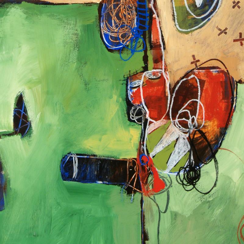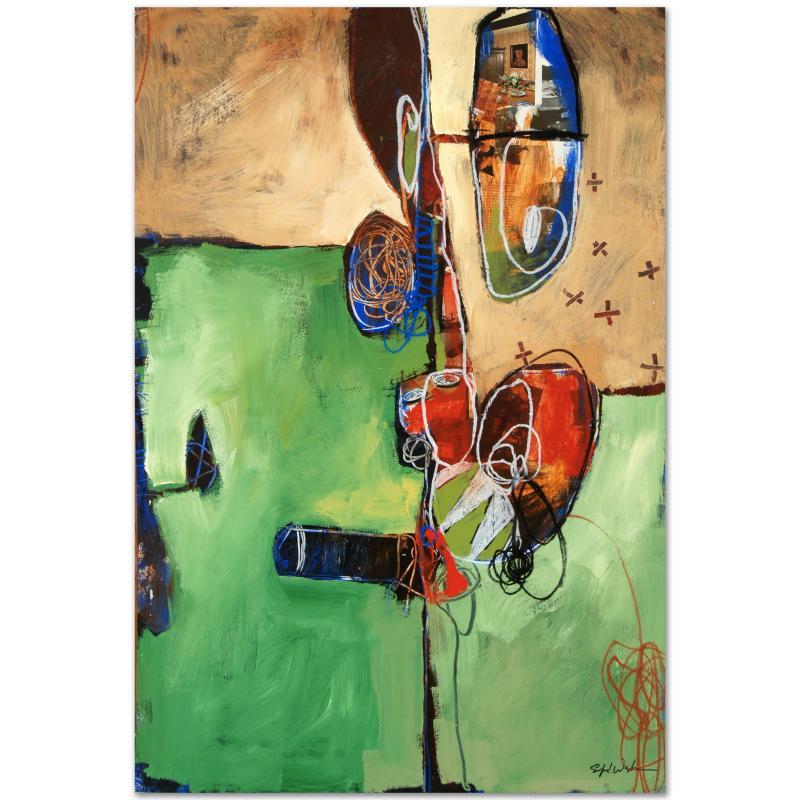 Wakeman uses vivid colors and bold lines to create pieces that truly make a visual statement. This piece is an untitled original painting on paper, hand signed by Wakeman. Measures approx. 30" x 44" (no border). ** Please note that there is a slight paper residue on the lower left side of the image that is only noticeable upon close inspection. The artwork is being offered with this in mind. **