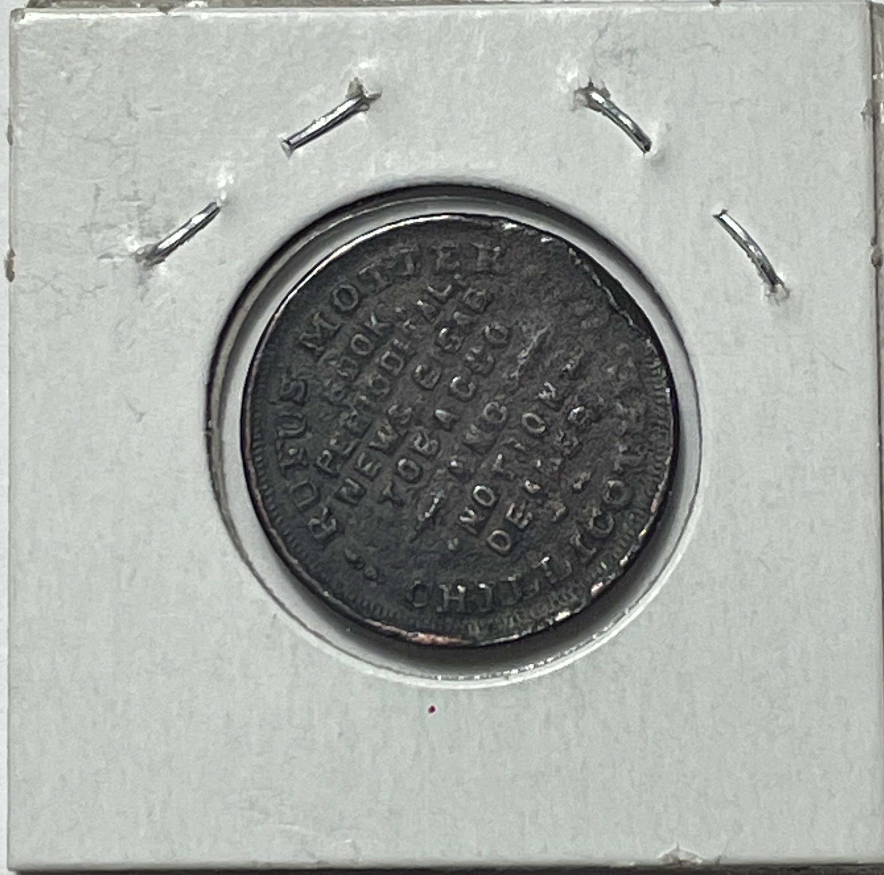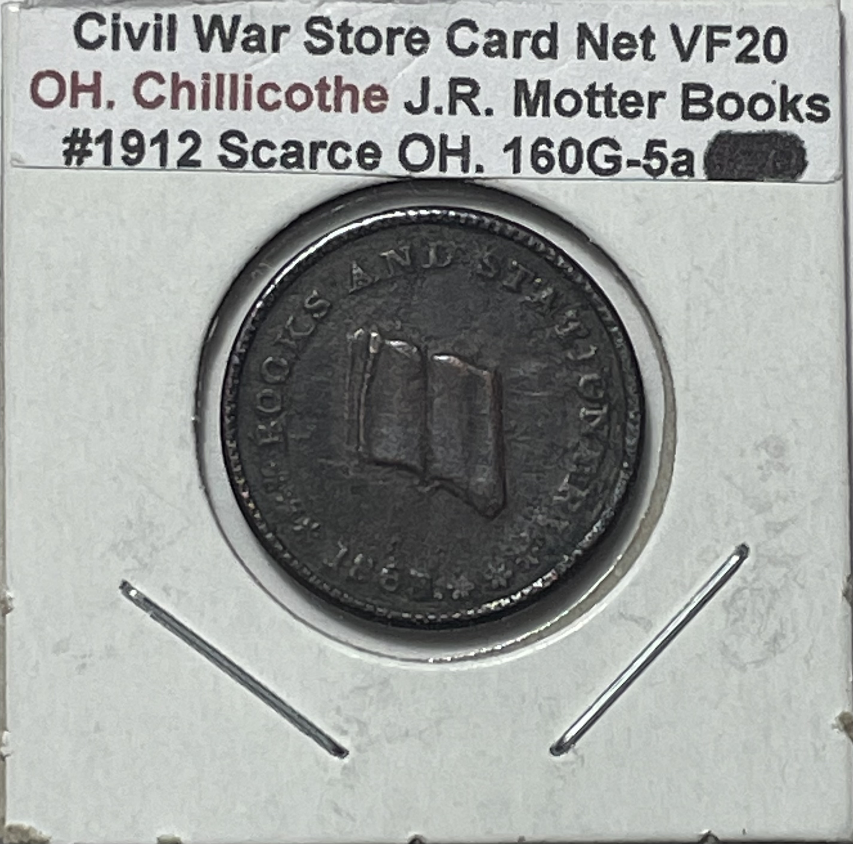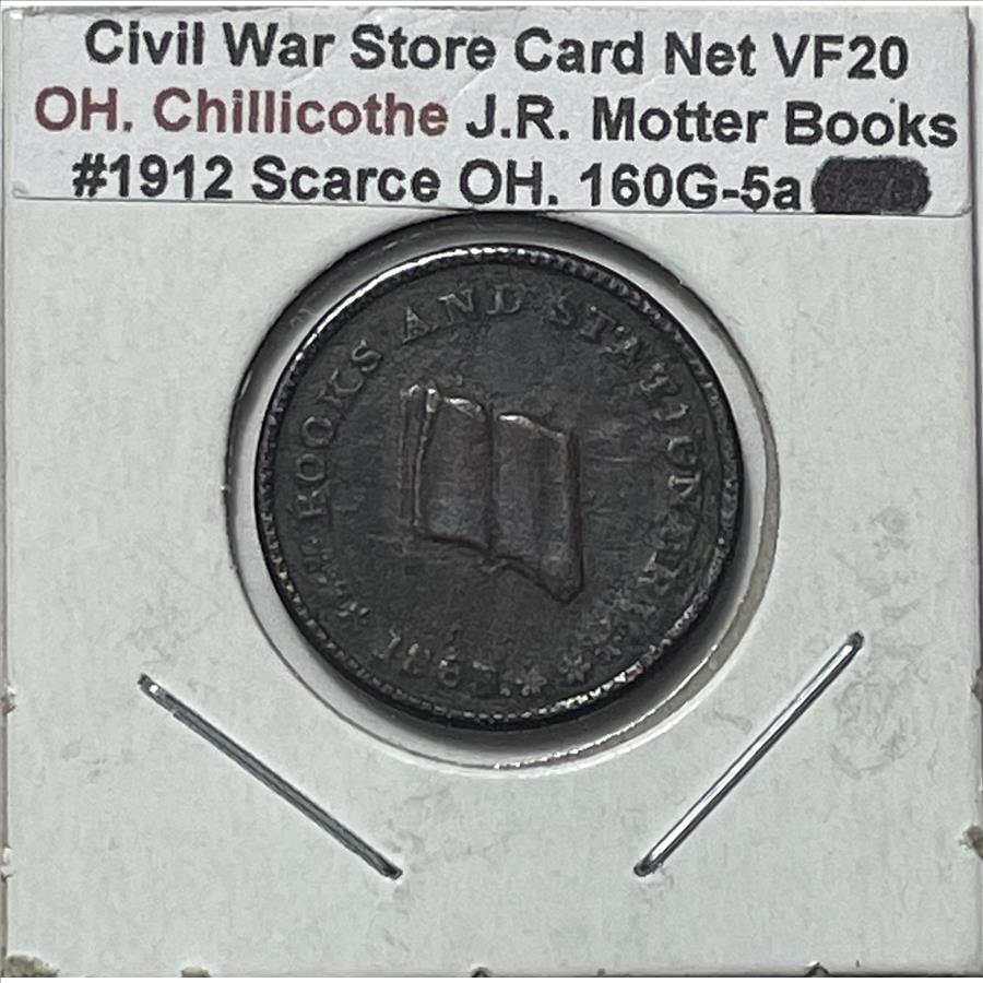 SCARCE 1863 Civil War Store Card Token - J.R.Motter - Books and Stationary - Cigars & Tobacco - Chillicothe, OH - DIE ROTATION