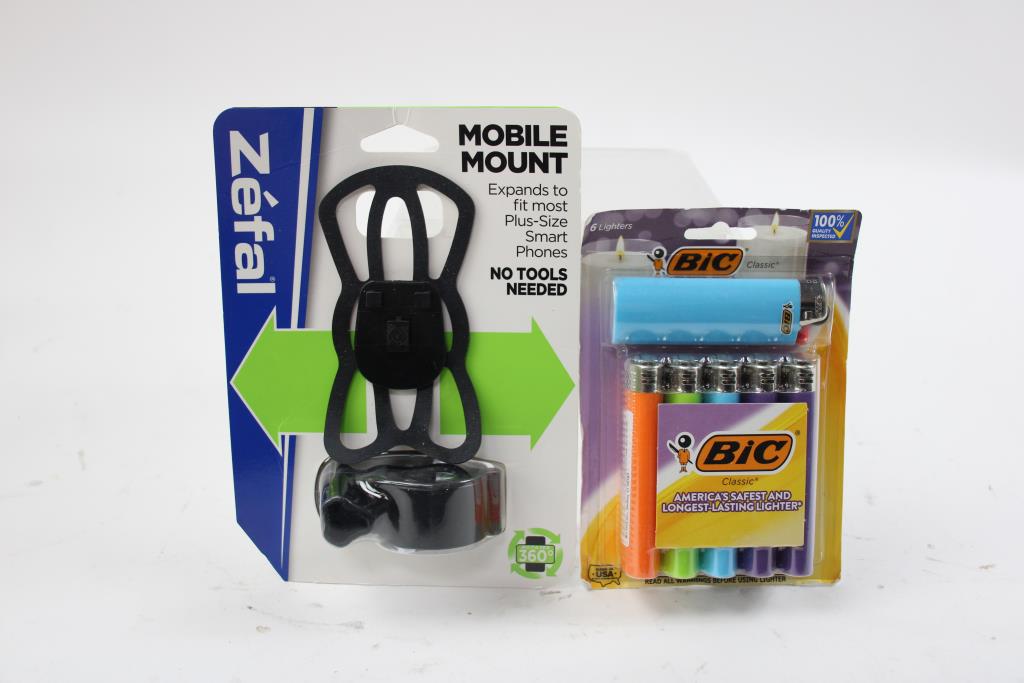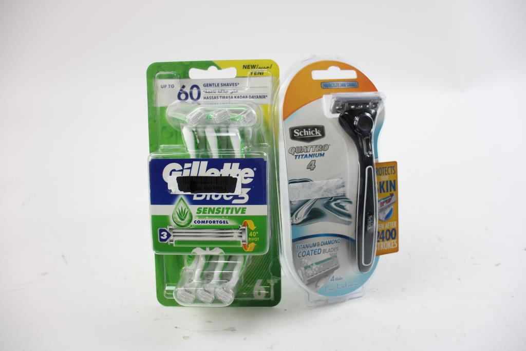 Schick Quatro Titanium Razor, Gillette Blue 3 Razor Pack, Mobile Mount, Bic Lighter Pack, 4 Pieces