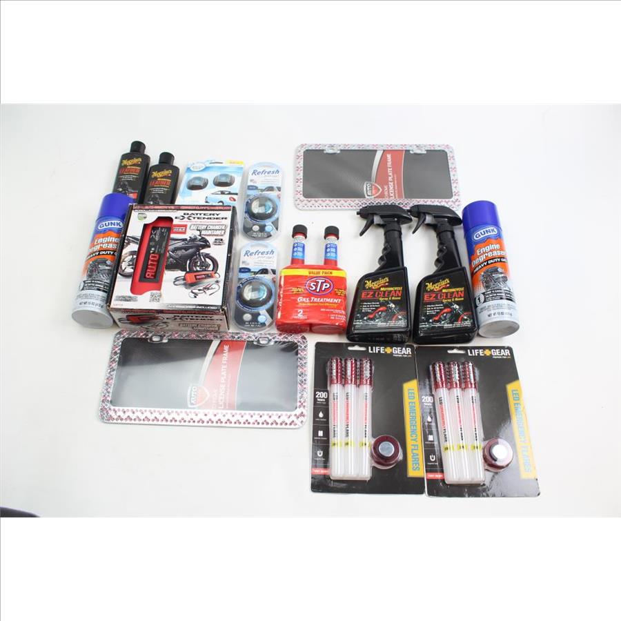 Get a great deal with this online auction for a bulk lot of car accessories presented by Property Room on behalf of a law enforcement or public agency client. - Bulk Lot Includes: Schumacher SP3 Battery Extender, STP Gas Treatment Bottles, License Plates, & More