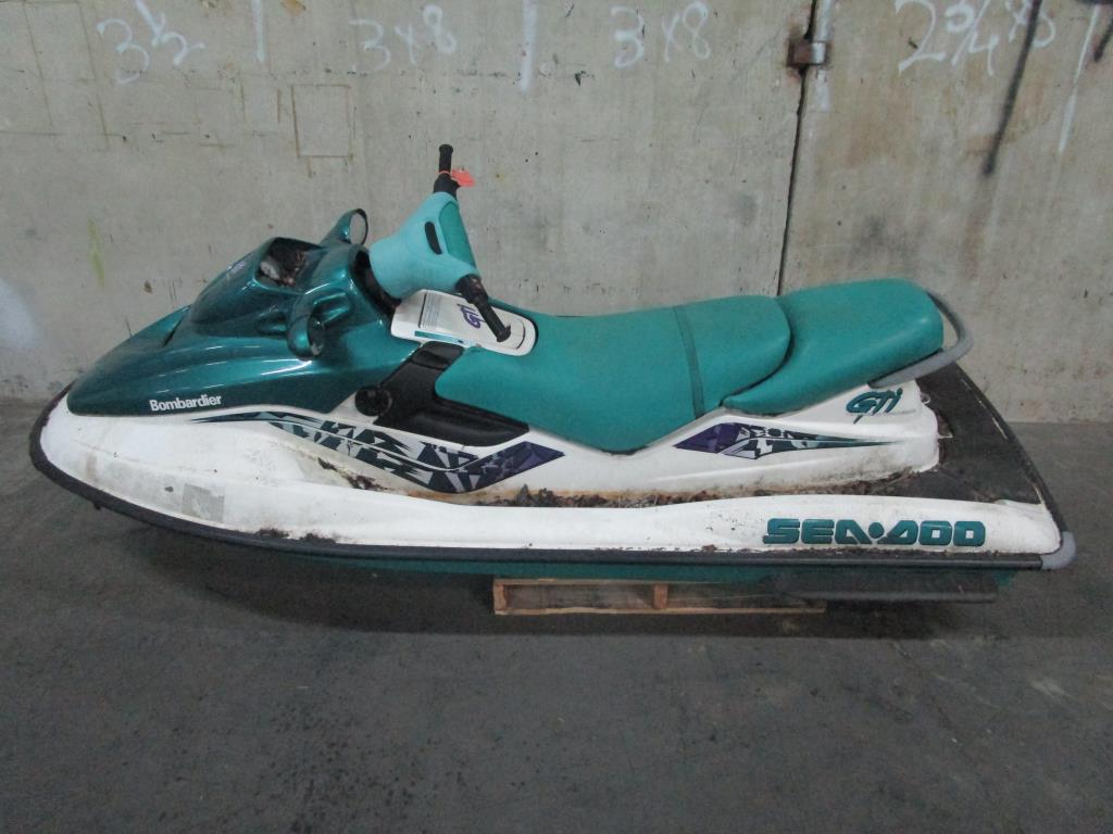 - 3 person seats, dual mirrors, star and stop buttons, gas powered, front storage, forward and reverse handle, GTI Powered tax morine, bombadier motor, trigger throttle on handle bars