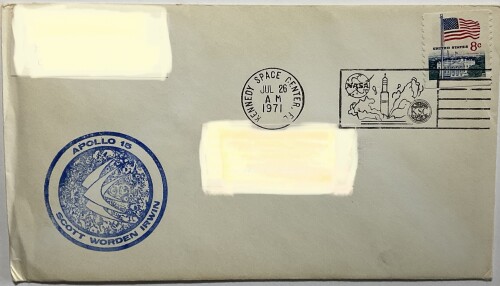 Sealed Apollo 15 Envelope (Unsearched Contents) & 8 Cent U.S. Stamp - Date Stamped 7/26/71 by Kennedy Space Center