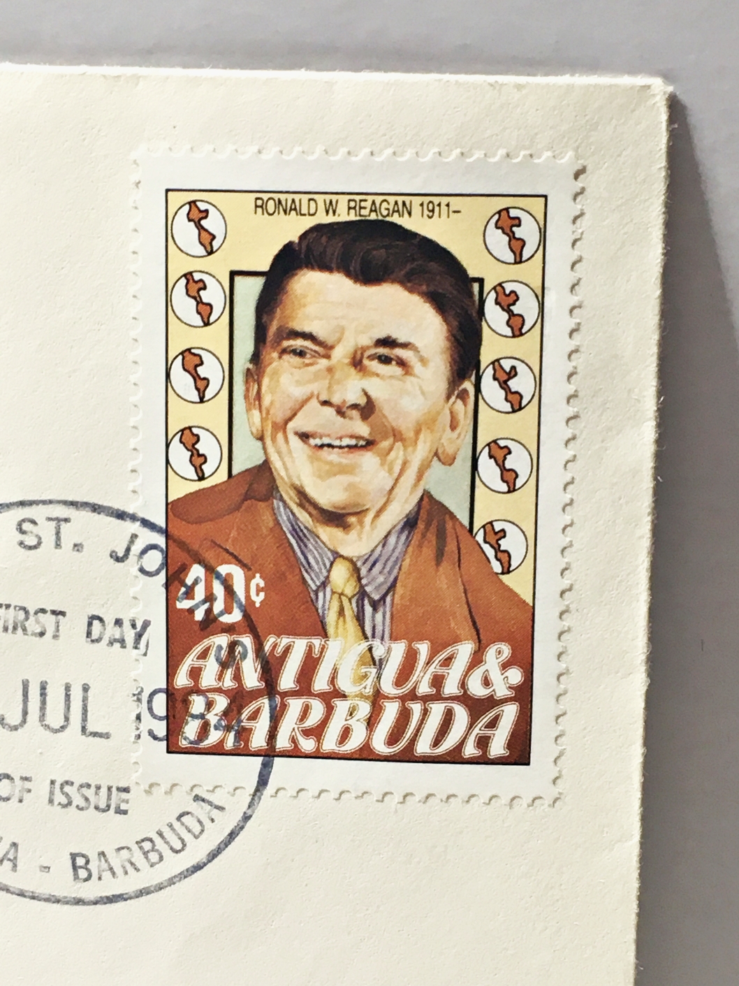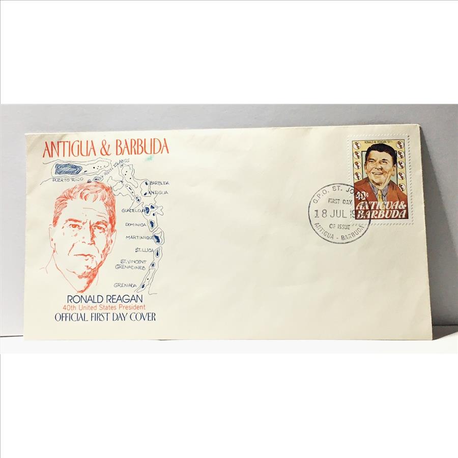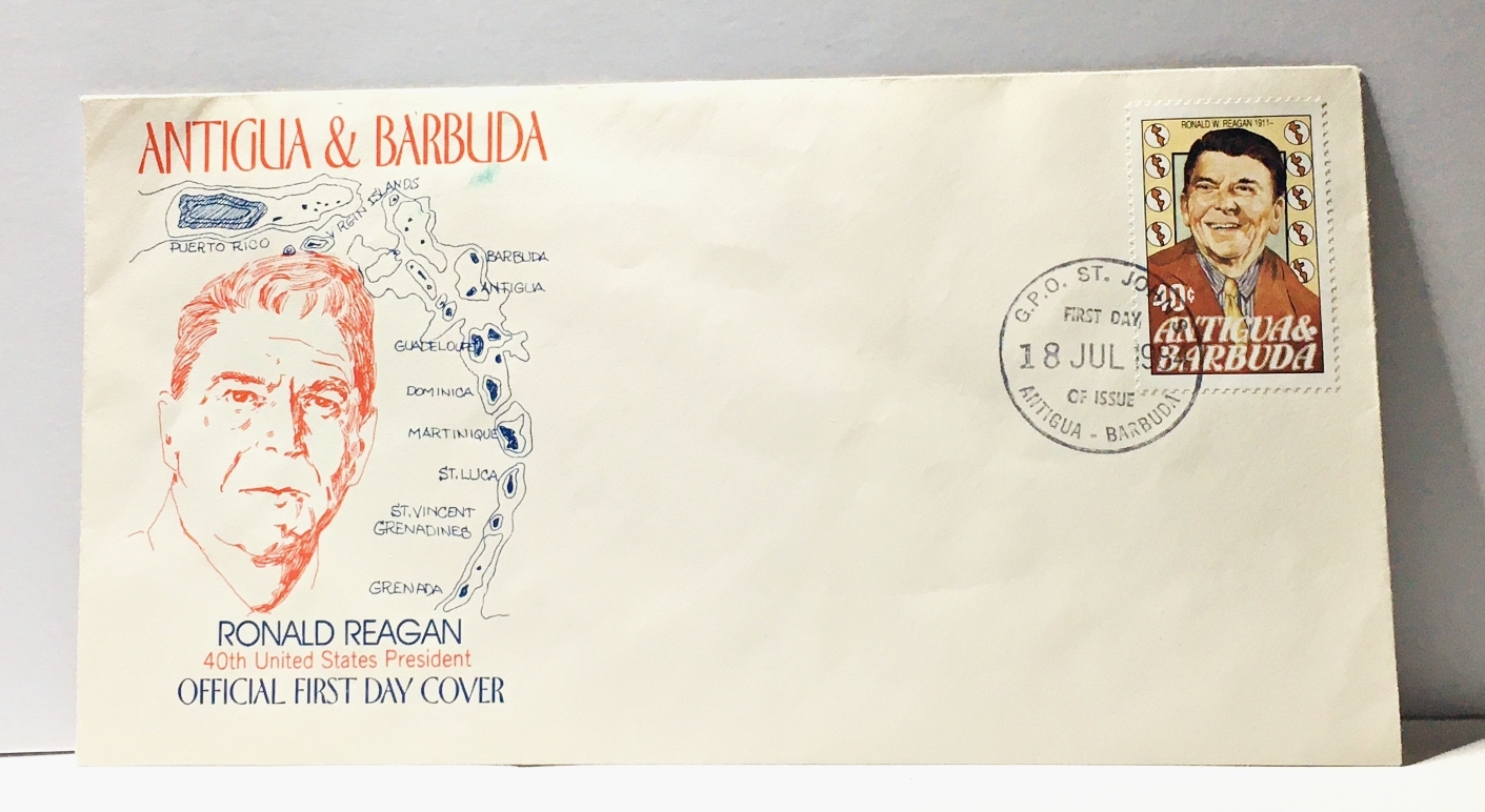 Sealed Envelope Commemorating Ronald Reagan*Postmarked 1984 From Antiqua & Barbuda*FDC 49c Stamp