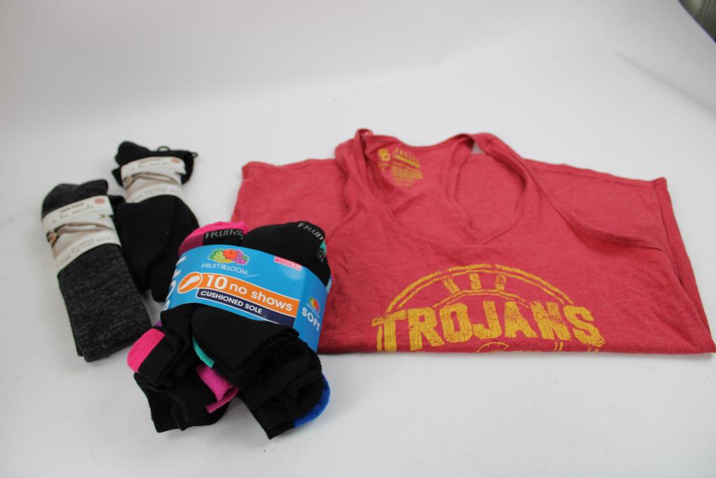 Get a great deal with this online auction presented by PropertyRoom.com on behalf of a law enforcement or public agency client. - Style: Sleepwear Dresses, Over-the-Knee Socks, No-Show Cushioned Socks, Trojans Tank Top