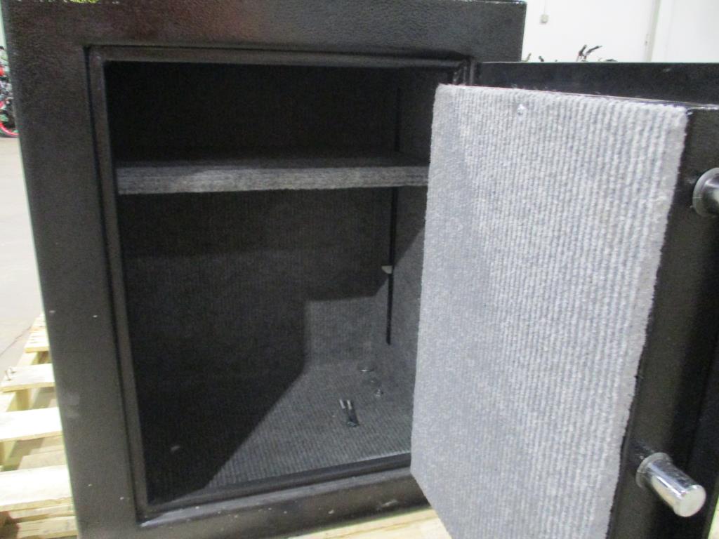- Accessories: 99 number combination safe, handle to open, single shelf w/ 3 in-place options, does come with combination, inside measurements are 26 T X 20 W X 17 L. 2 holes in bottom to bolt to the floor.