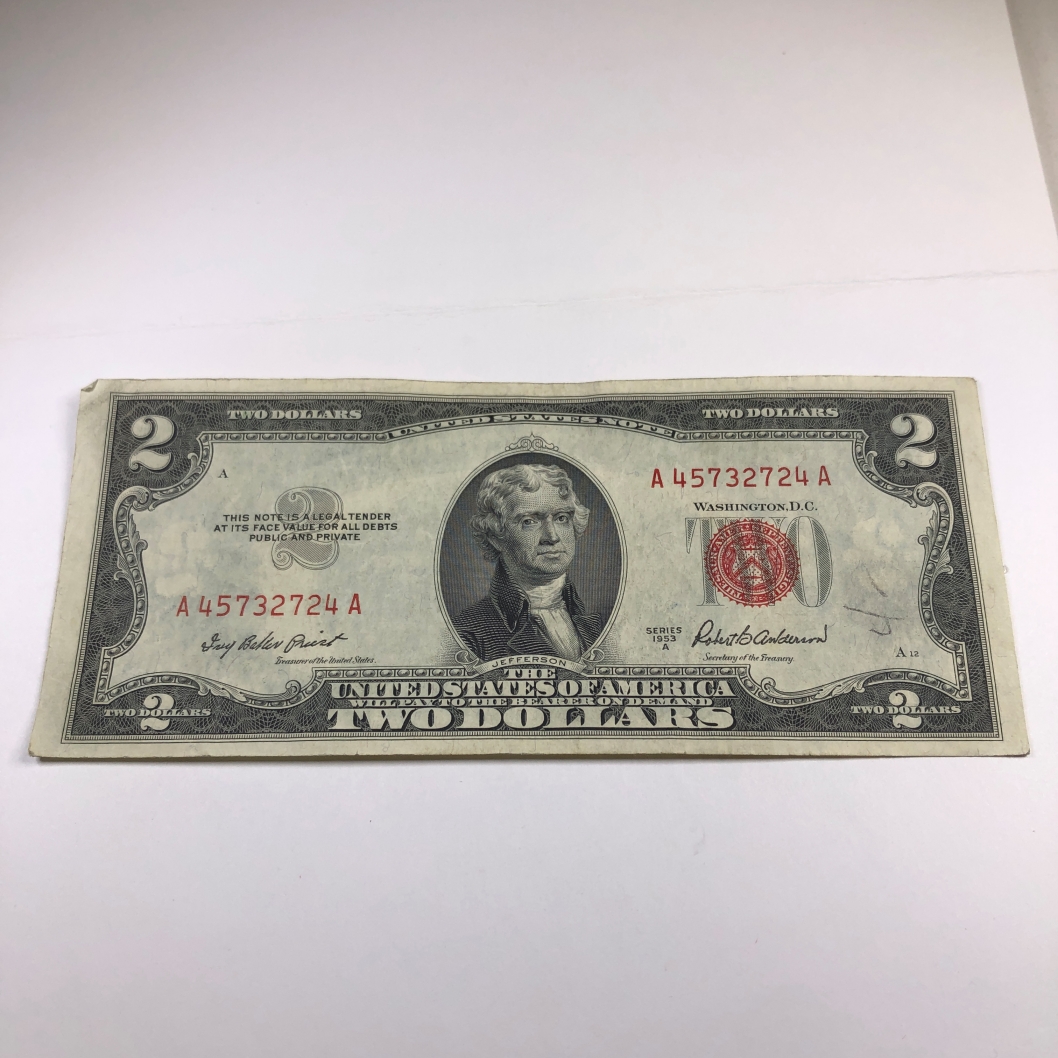Series 1953A $2 United States Red Seal Note*Circulated*Crisp Paper