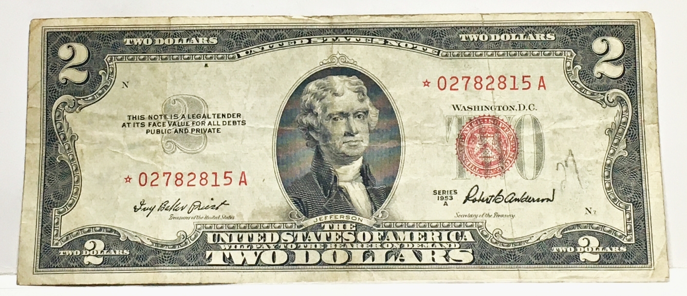 Series 1953A $2 United States Red Seal STAR NOTE REPLACEMENT ERROR*Circulated*Crisp Paper