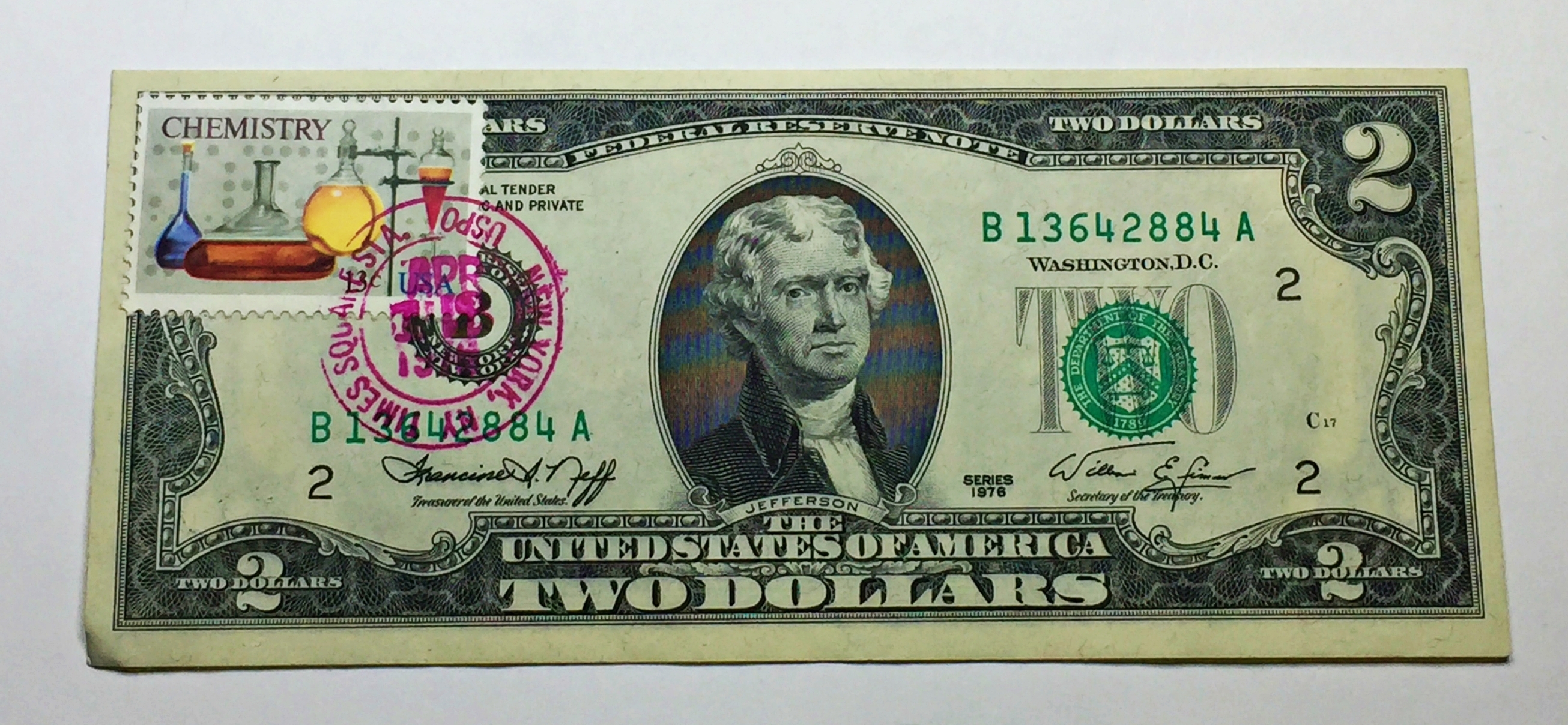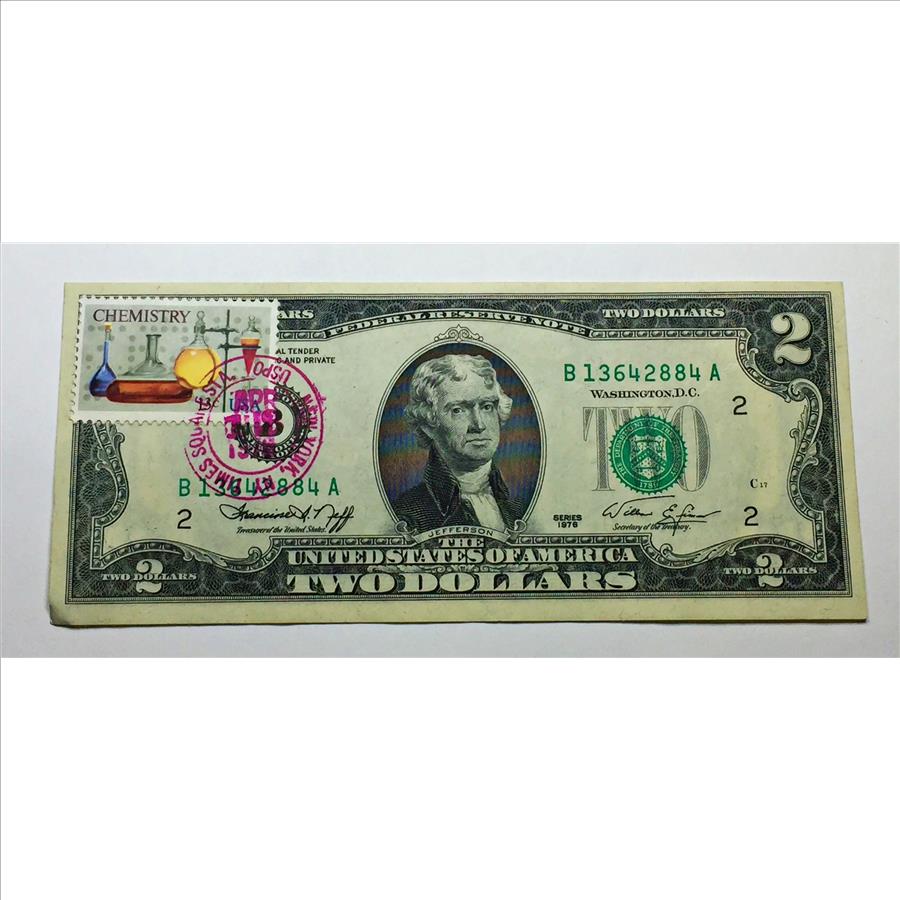 Series 1976 $2 United States Bicentennial Federal Reserve Note with Stamp*New York, NY*Uncirculated