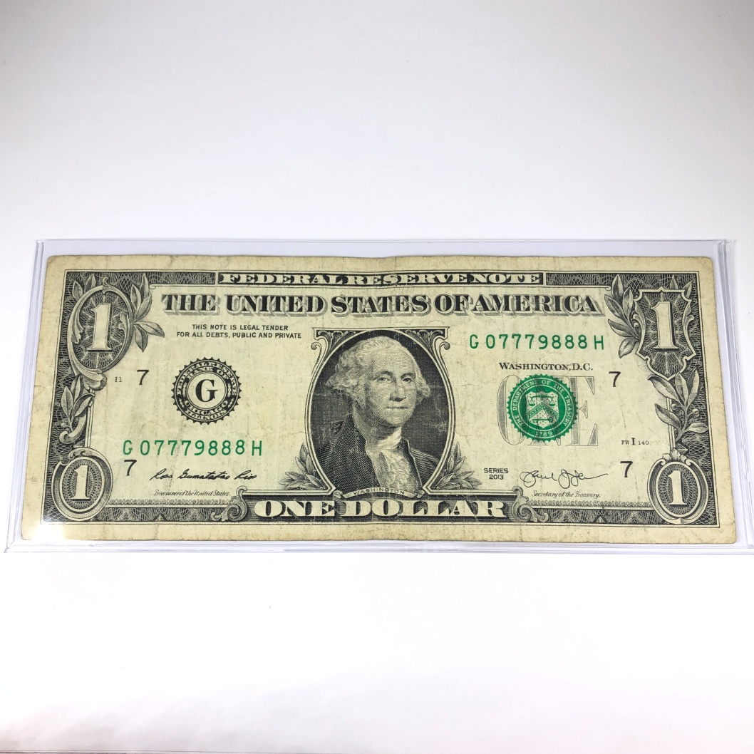 Series 2013 $1 Federal Reserve Fancy Serial Number Note; Chicago, IL*G07779888H