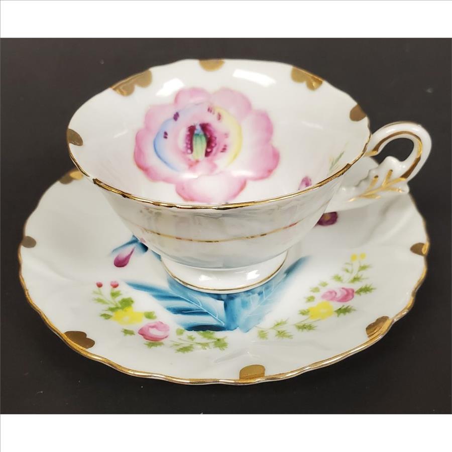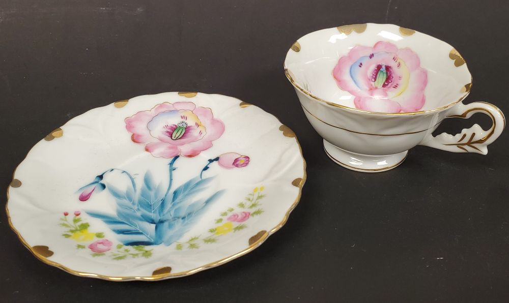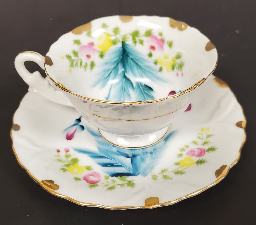 Vintage Hand Painted Shafford England Bone China Demitasse Cup and Saucer