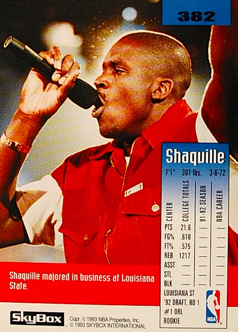 SHAQUILLE O'NEAL ~ 1992 SKYBOX ~ "ROOKIE CARD" ` ORLANDO MAGIC