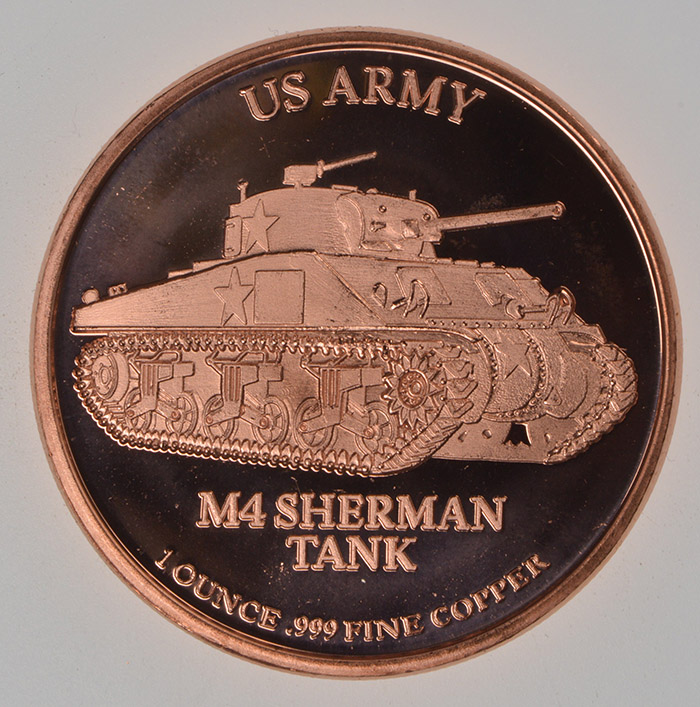 Sherman Tank - Military Series - 1 Oz .999 Fine Copper Round