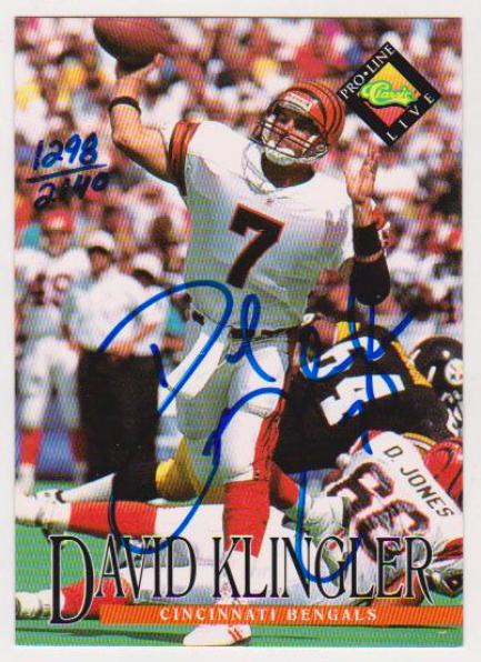 Signed - David Klingler 1994 Pro Line Certified Autographed Insert Card #1298/2140