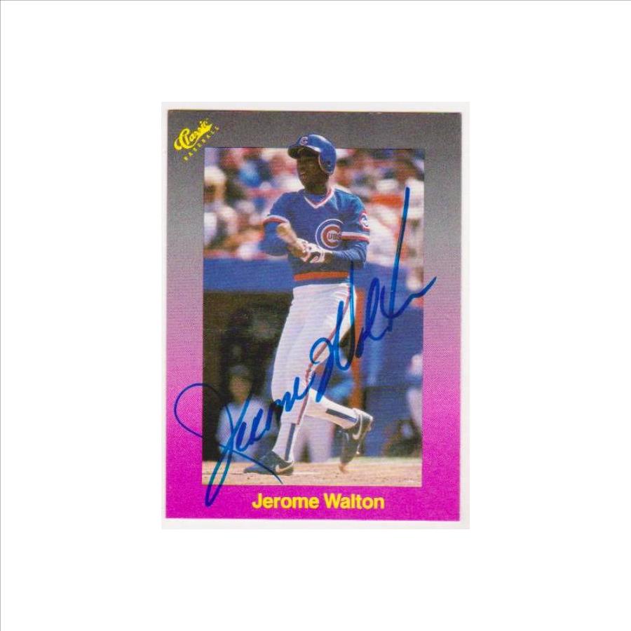 This is a 1990 Classic Jerome Walton #156 card that has been hand signed in blue Sharpie.  Walton was the 1989 National League Baseball Rookie Of The Year.  This card features a nice looking bold autograph.  There is no coa but the autograph appears to be real.  This signed card was part of a closed stores autograph inventory we are liquidating.