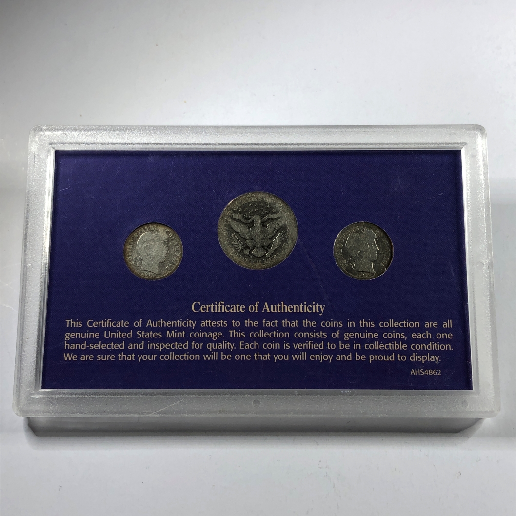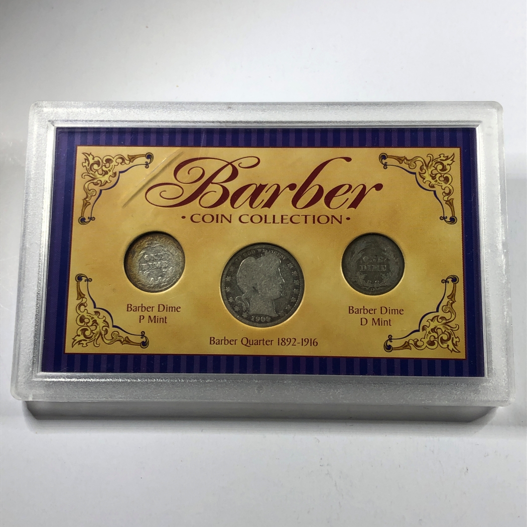 Silver Barber Coin Collection: 1911-P Dime, 1911-D Dime and 1909 Quarter*In Custom Holder