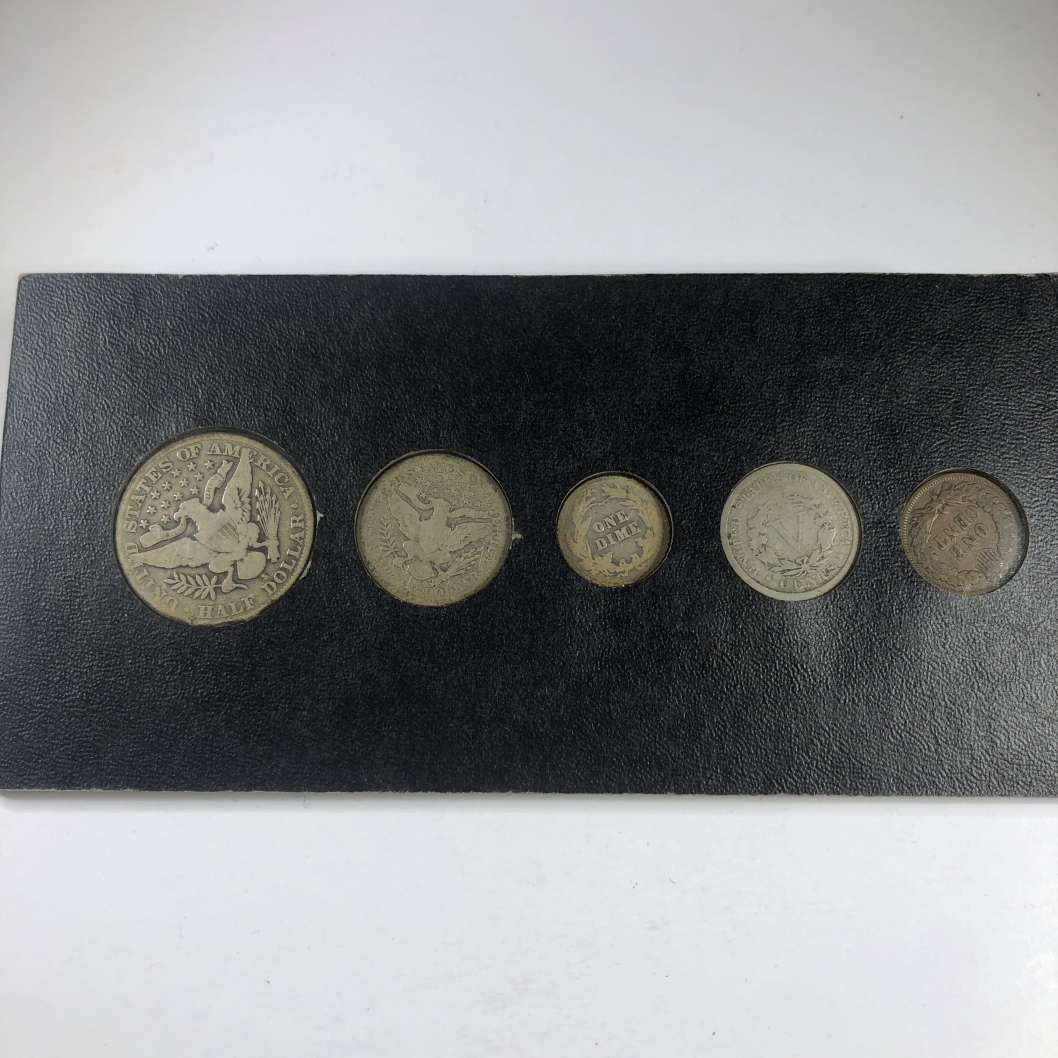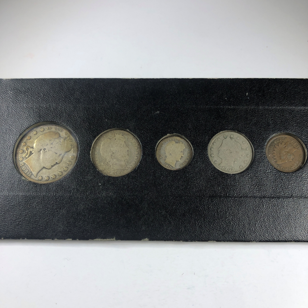 Silver Coins: 1914-S Barber 50c, 1909-D Barber 25c, 1915 Barber Dime*1907 "V" Nickel and 1906 Indian Head 1c