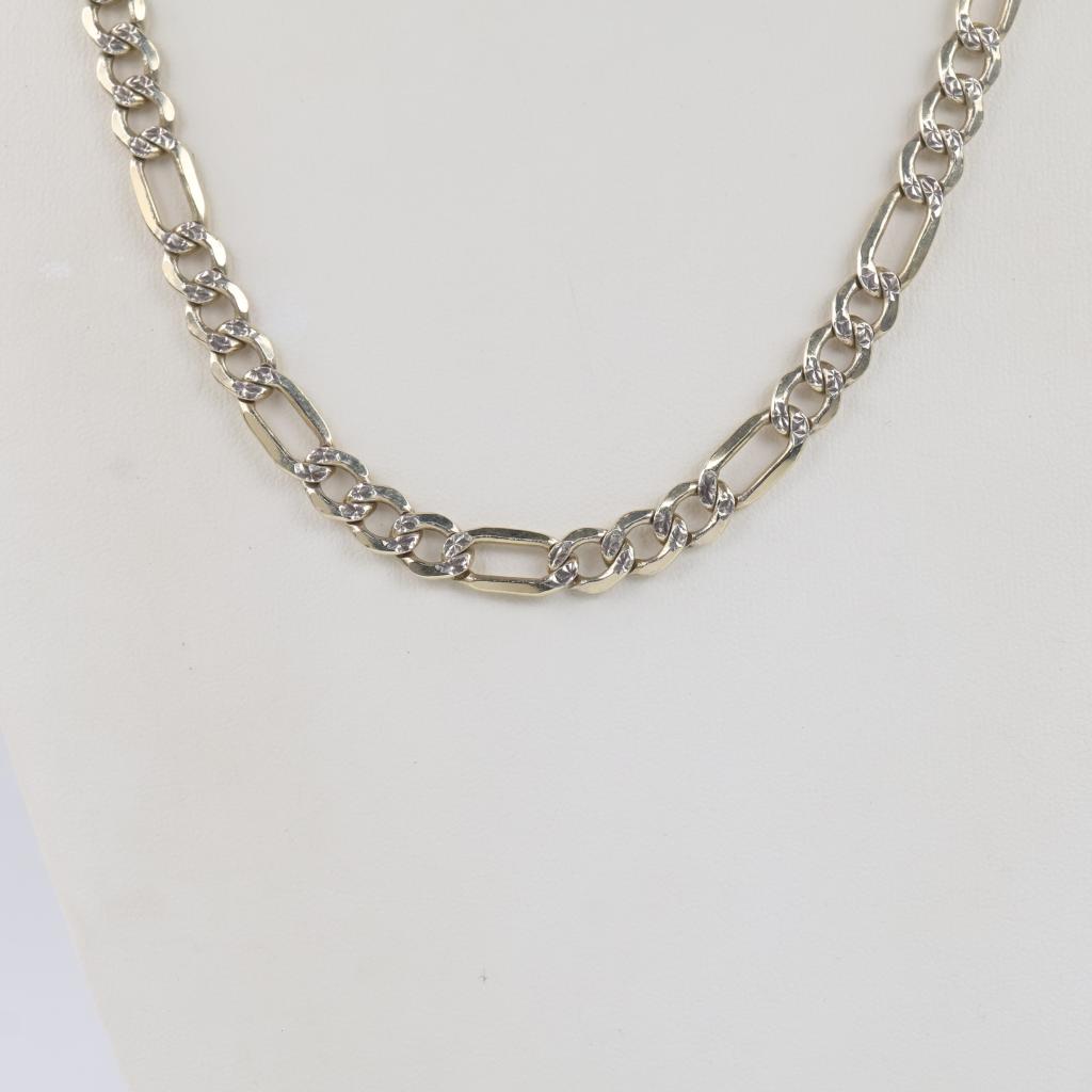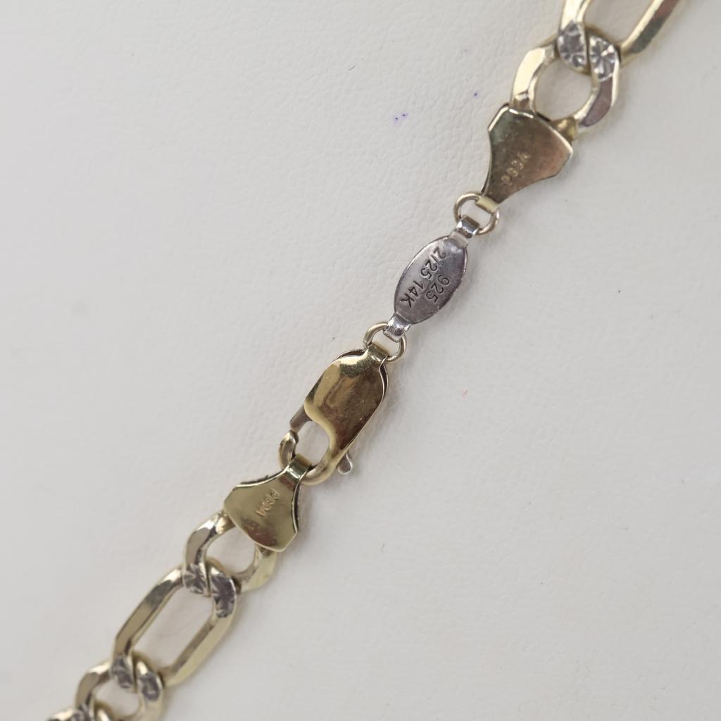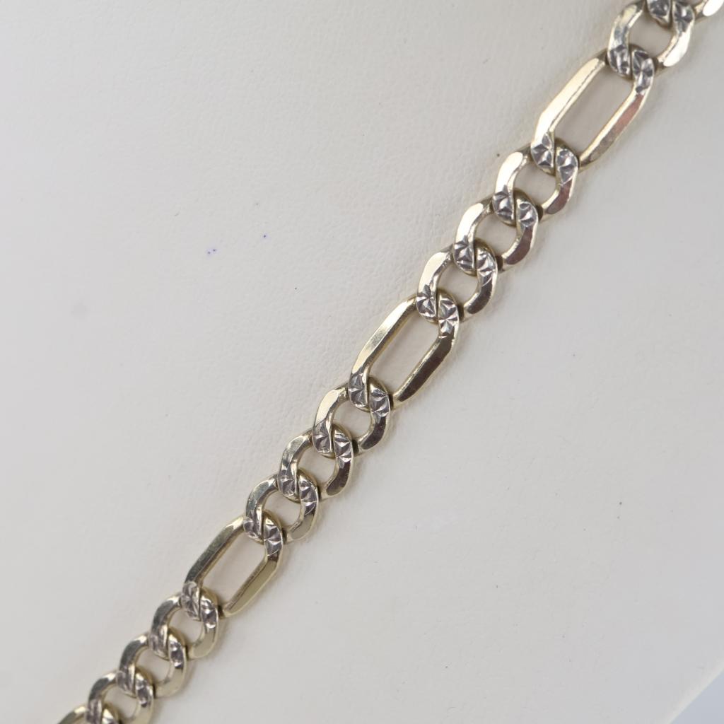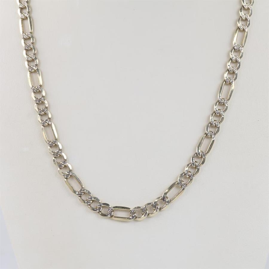 Silver Gold Plated Figaro Check Link Necklace