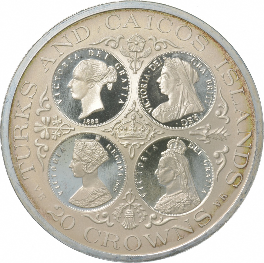 SILVER - HUGE - 1976 Turks And Caicos Islands 20 Crowns - World Silver Coin