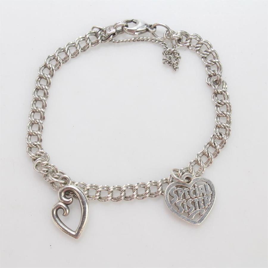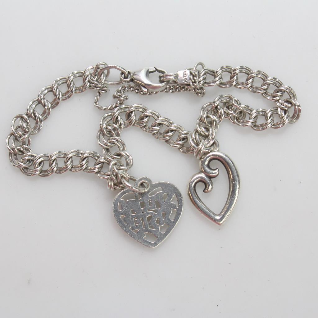 Silver James Avery Bracelet With 2 Heart Charms, 10.71g