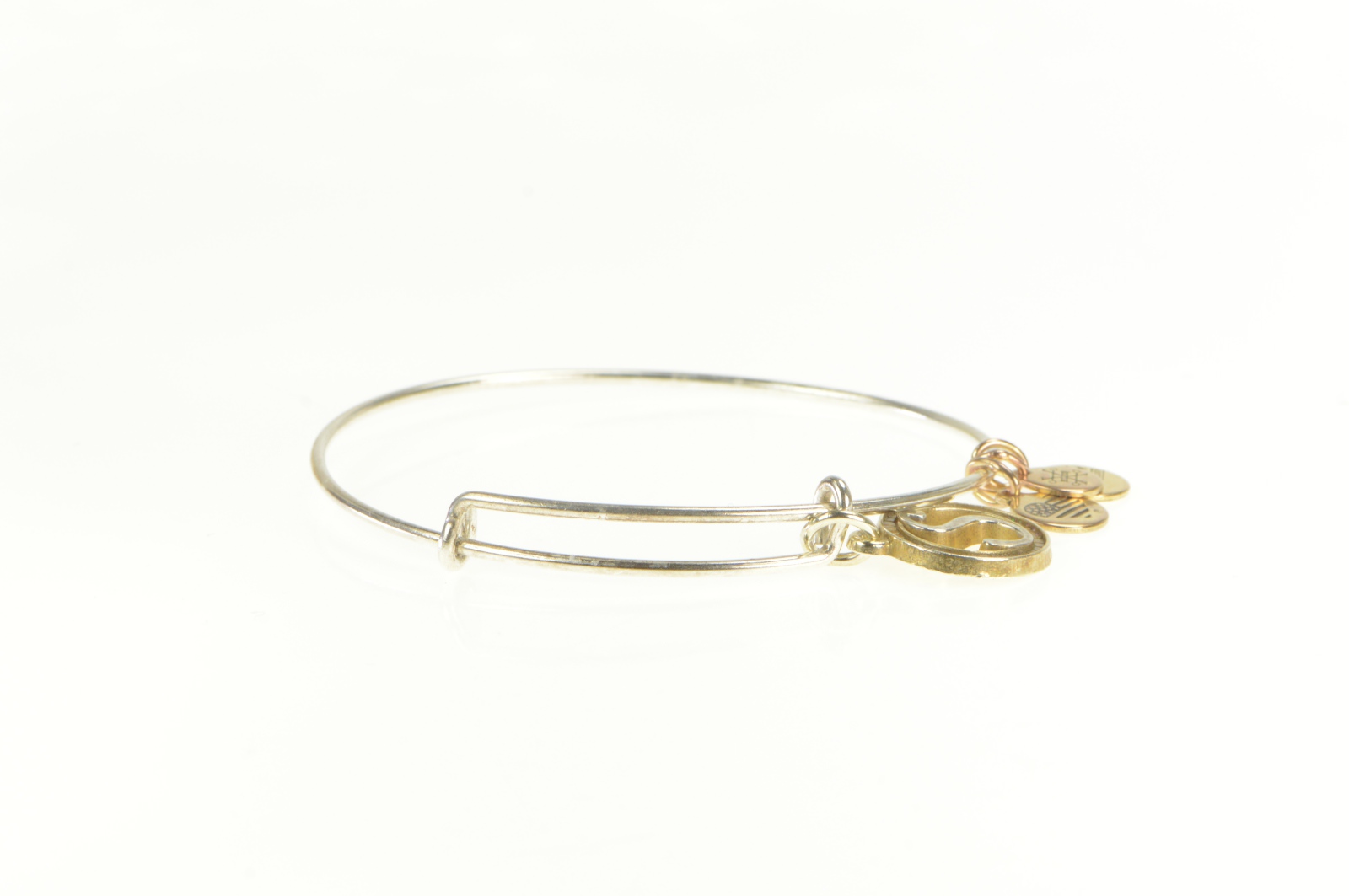 Silver Plated Alex & Ani S Monogram Initial Two Tone Charm Bracelet 7.5"