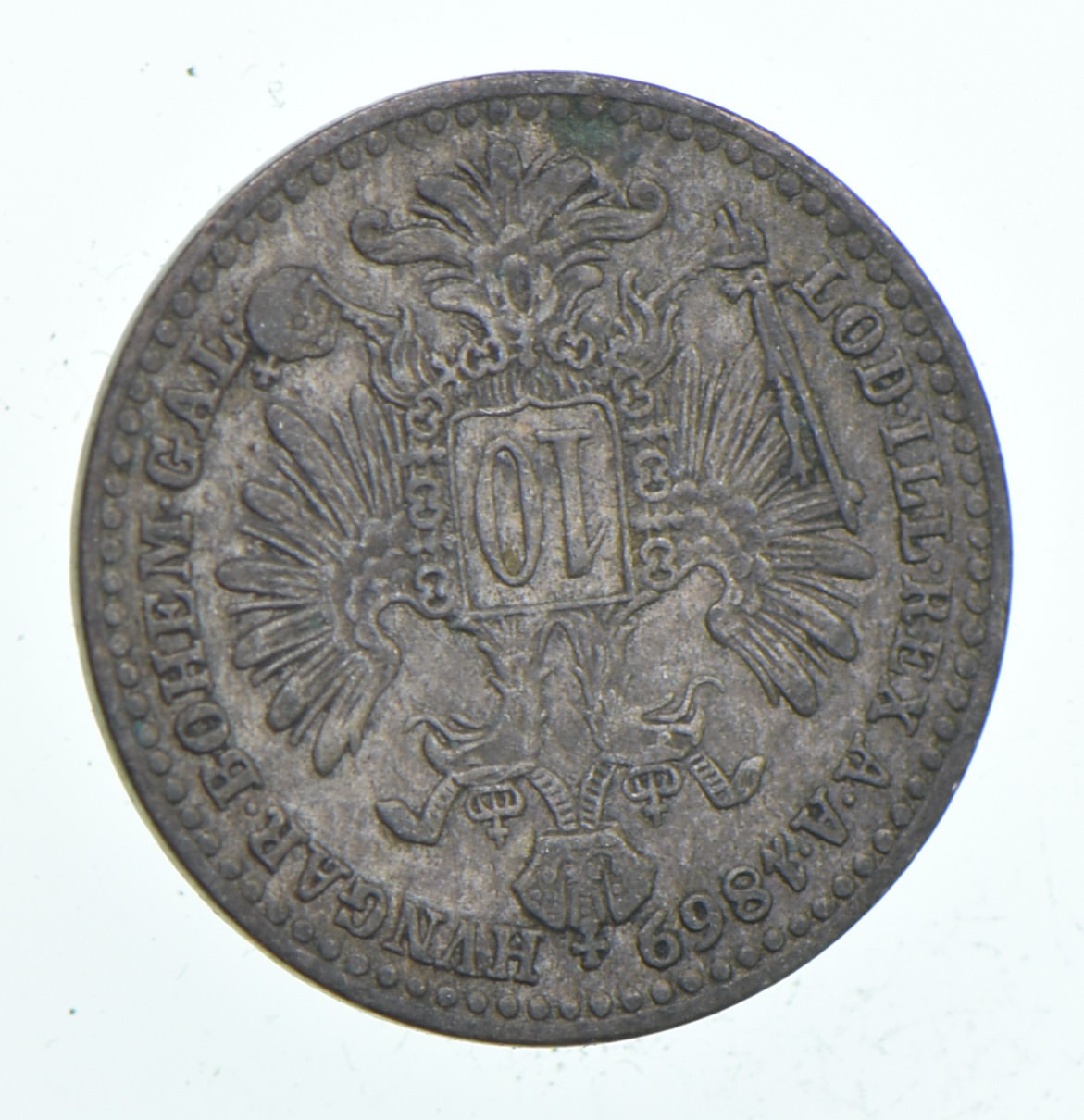 SILVER - Roughly the Size of a Dime - 1869 Austria-Habsburg 10 Kreuzer - World Silver Coin