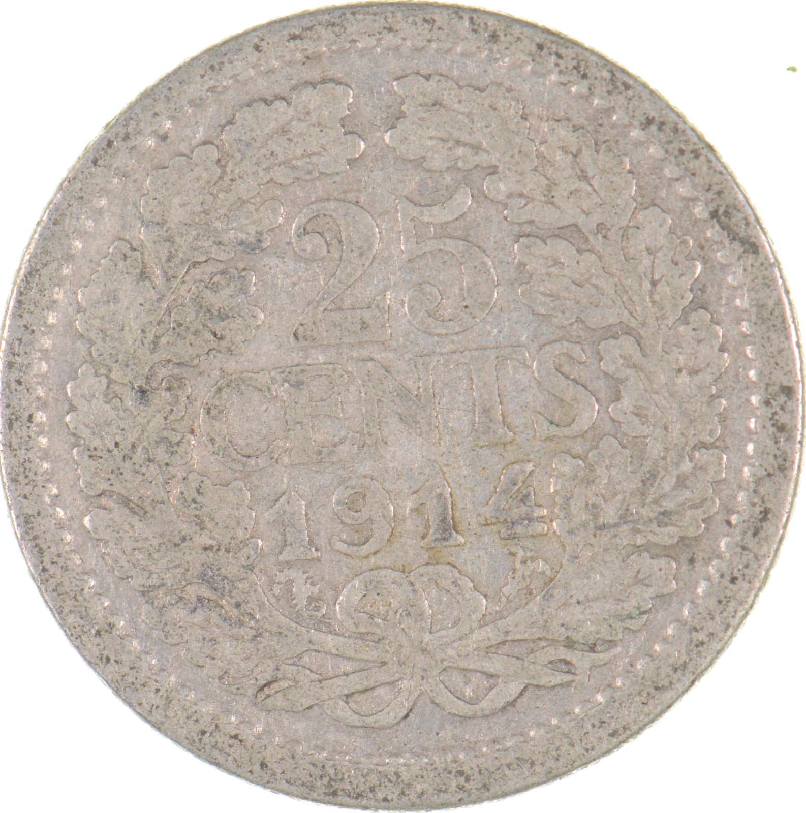 SILVER - Roughly the Size of a Dime - 1914 Netherlands 25 Cents - World Silver Coin