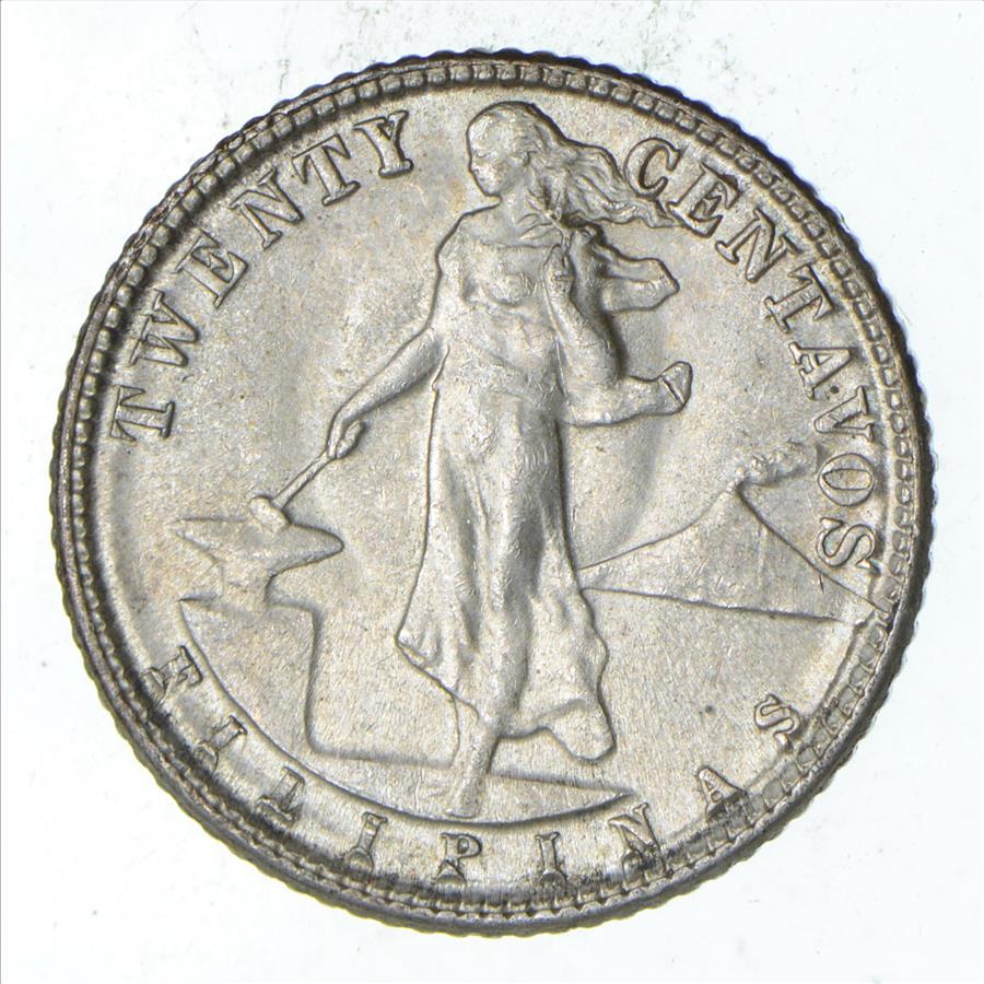 SILVER - Roughly the Size of a Nickel - 1915 Philippines 20 Centavos - World Silver Coin
