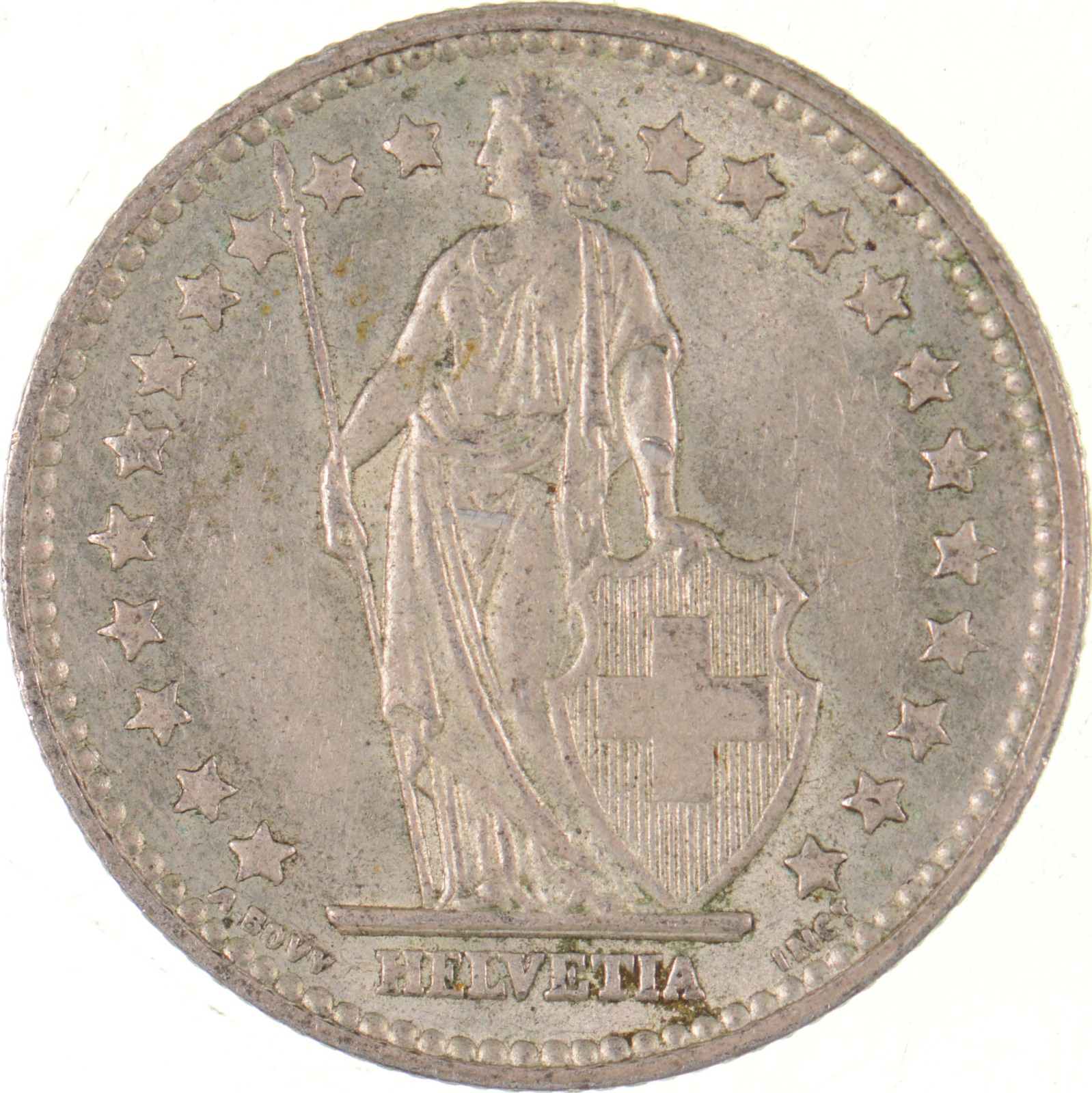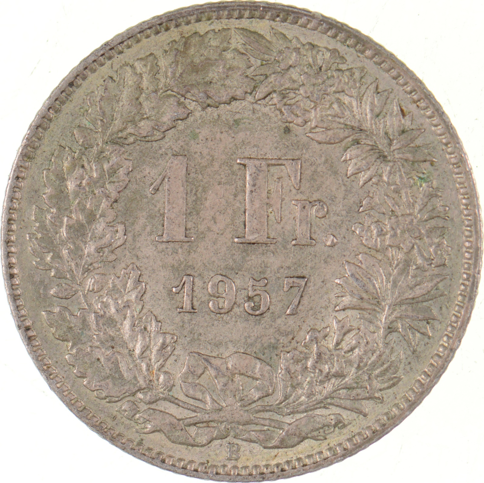 SILVER - Roughly the Size of a Quarter - 1957 Switzerland 1 Franc - World Silver Coin
