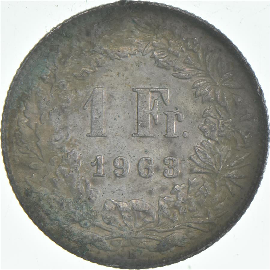 SILVER - Roughly the Size of a Quarter - 1963 Switzerland 1 Franc - World Silver Coin