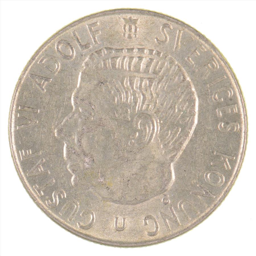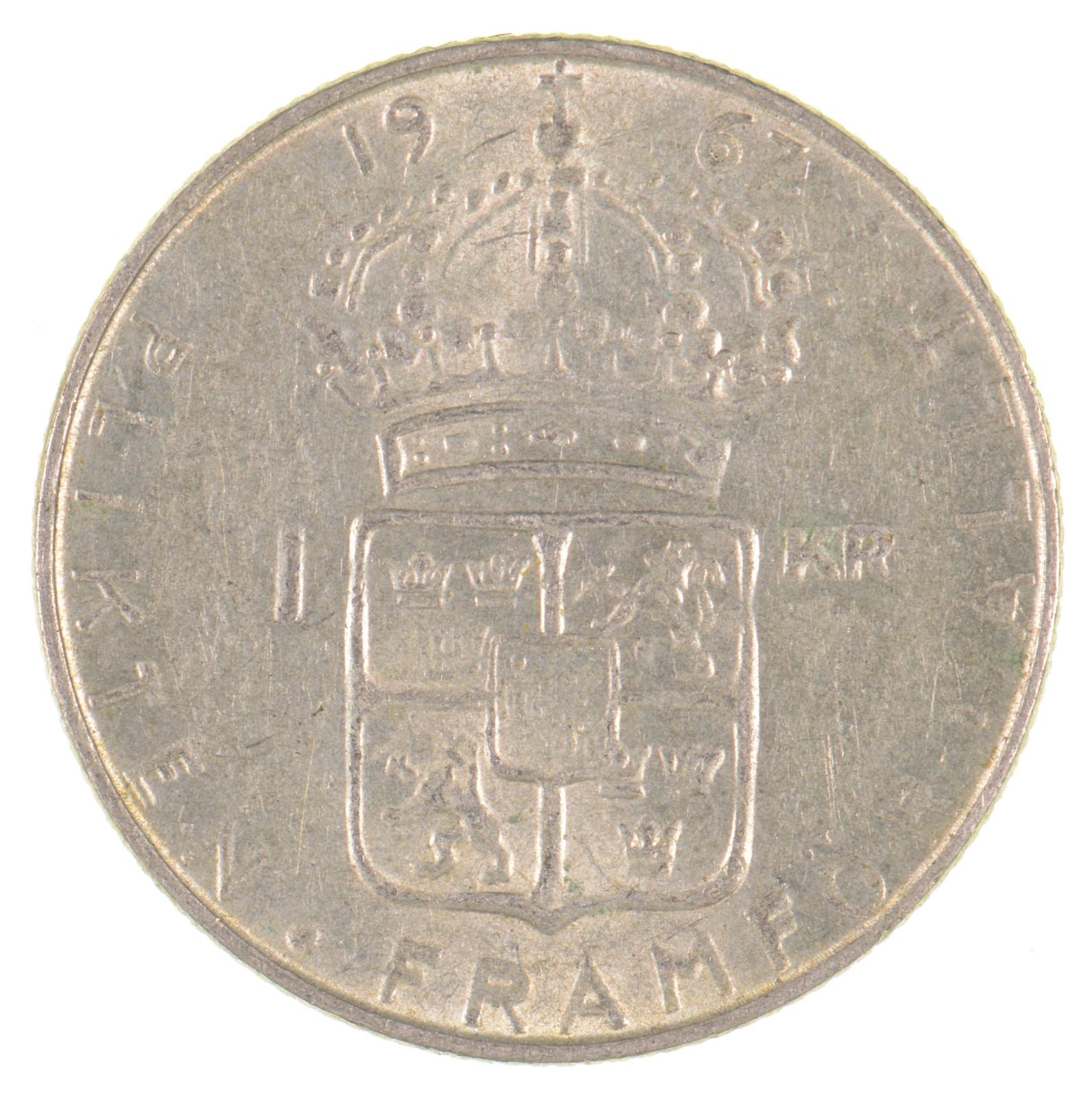 SILVER - Roughly the Size of a Quarter - 1967 Sweden 1 Krona - World Silver Coin