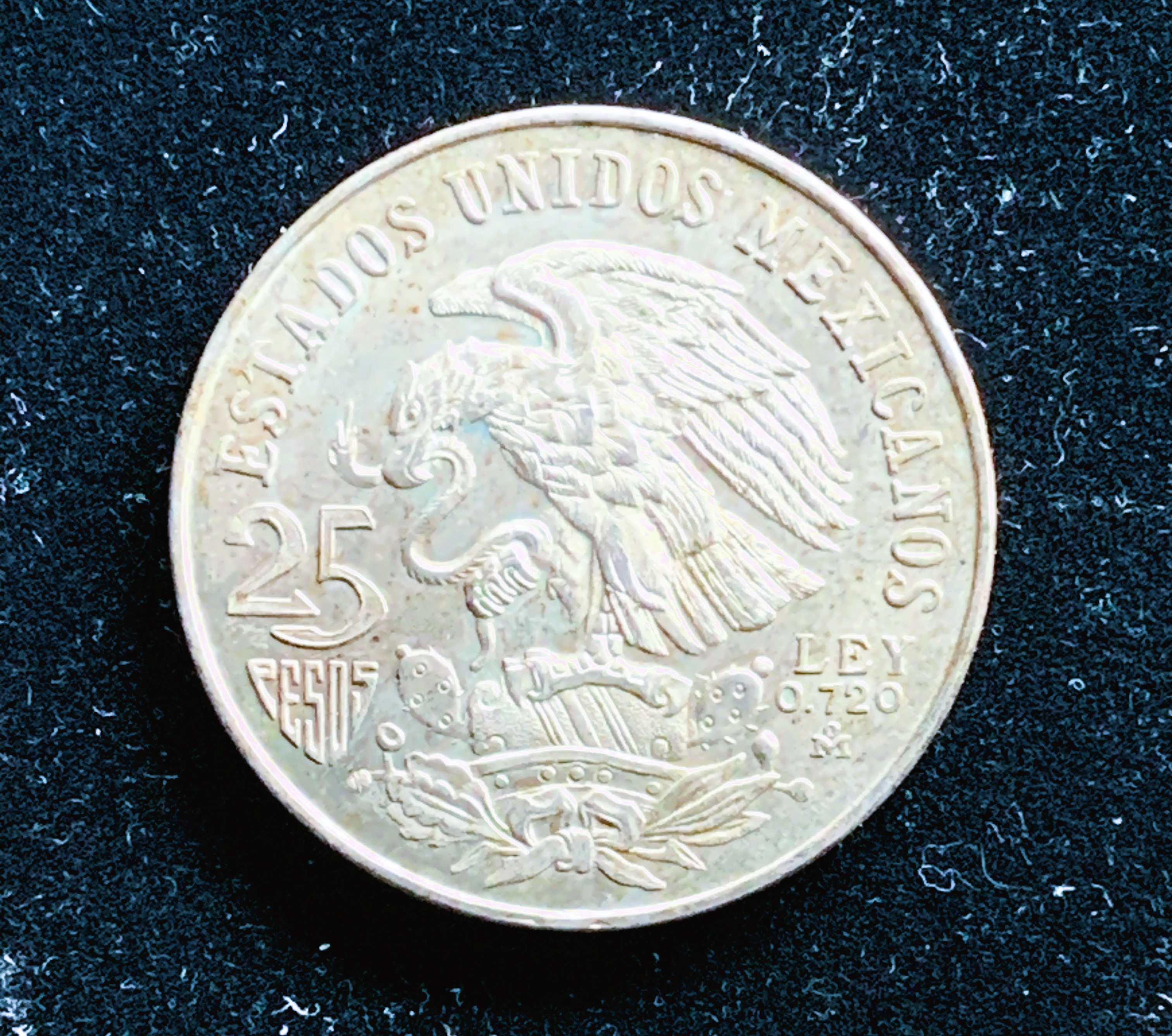SILVER ROUND, MEXICO 25 PESO, 1968 OLYMPICS, BU NICE COIN