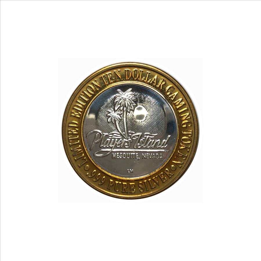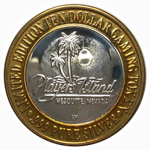 Silver Strike!  Collector's Series $10 Silver Gaming Token -Players Island Mesquite Nevada - .999 Fine Silver