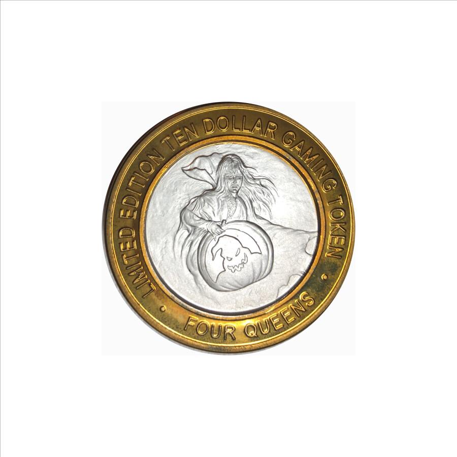 Silver Strike!  Limited Edition $10 Silver Gaming Token - 4 Queens Hotel and Casino Las Vegas - .999 Fine Silver