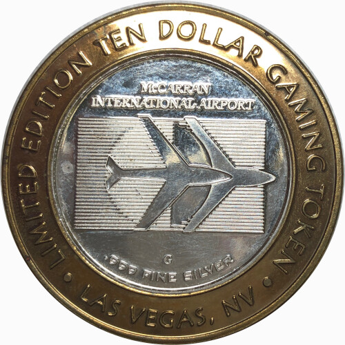 Silver Strike!  Limited Edition $10 Silver Gaming Token - McCarren International Airport - .999 Fine Silver