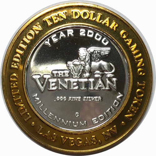 Silver Strike!  Limited Edition $10 Silver Gaming Token - The Venetian Las Vegas - Millenium Edition Doge's Palace