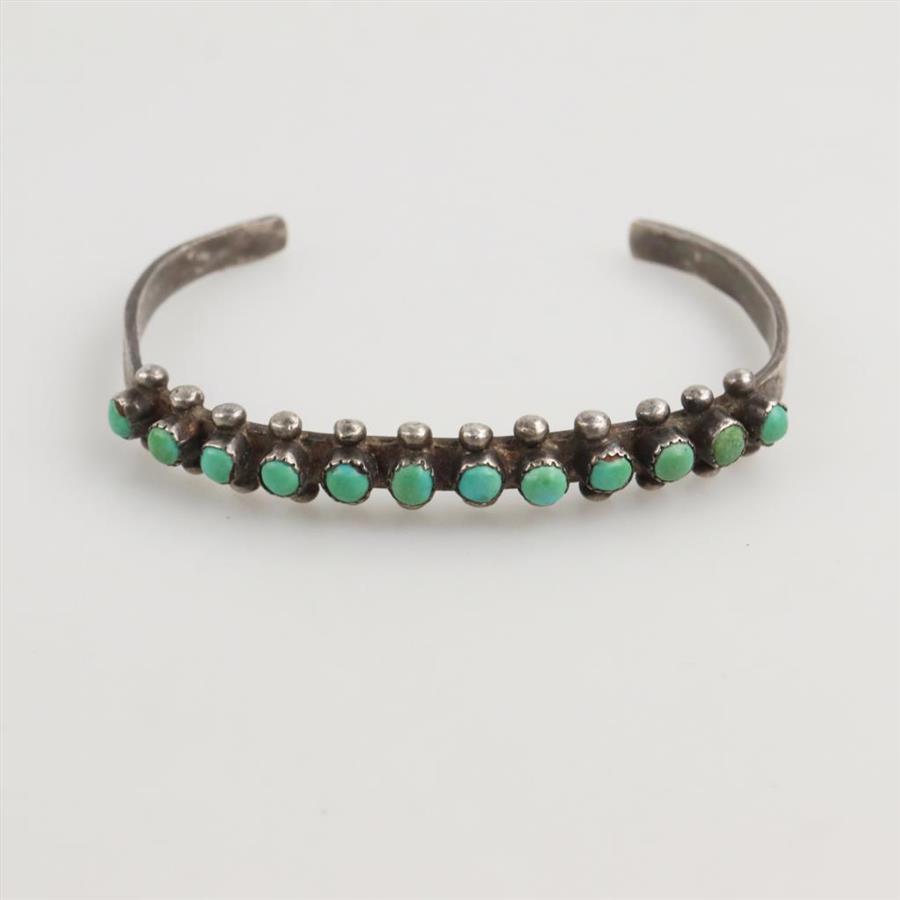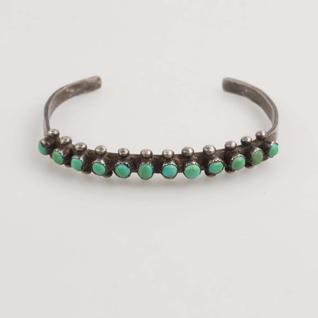 Silver Turquoise Stamped Cuff Bangle Cuff