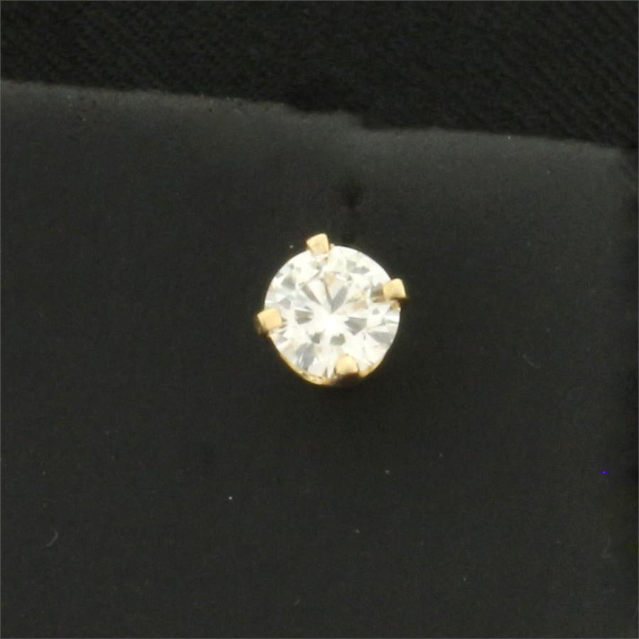 In 14k yellow gold basket setting. Contains one high quality 1/3ct round brilliant diamond, SI clarity/H color. Screw backs. 5g.