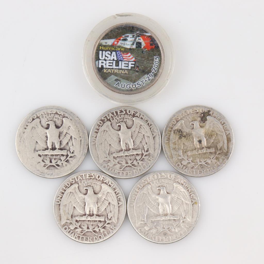 Six US Quarters, Including Silver
