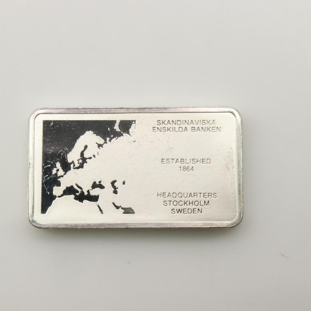 Skandinaviska Enskilda Banken Sweden Proof Silver 1000 Grain Bar