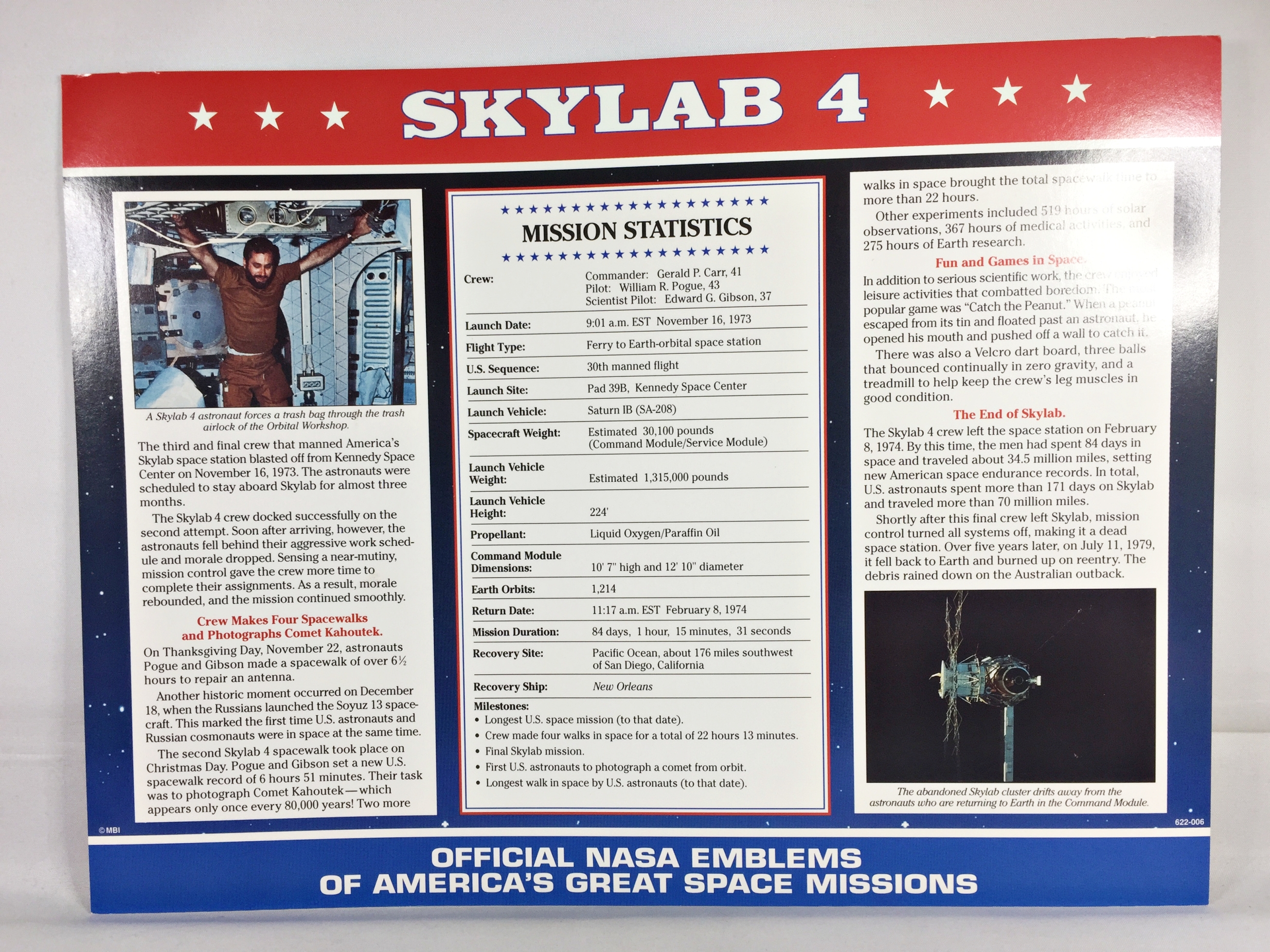 Skylab 4 (Carr-Gibson-Pogue) NASA Space Mission Emblem Patch*Encased in 9" x 11" Historical Story Board