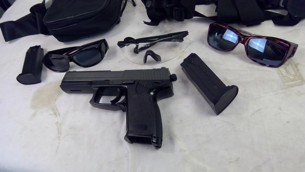 Sling Bag, Fitover Sunglasses, Safety Glasses, BB Gun, And Gun Holster, 6 Pieces